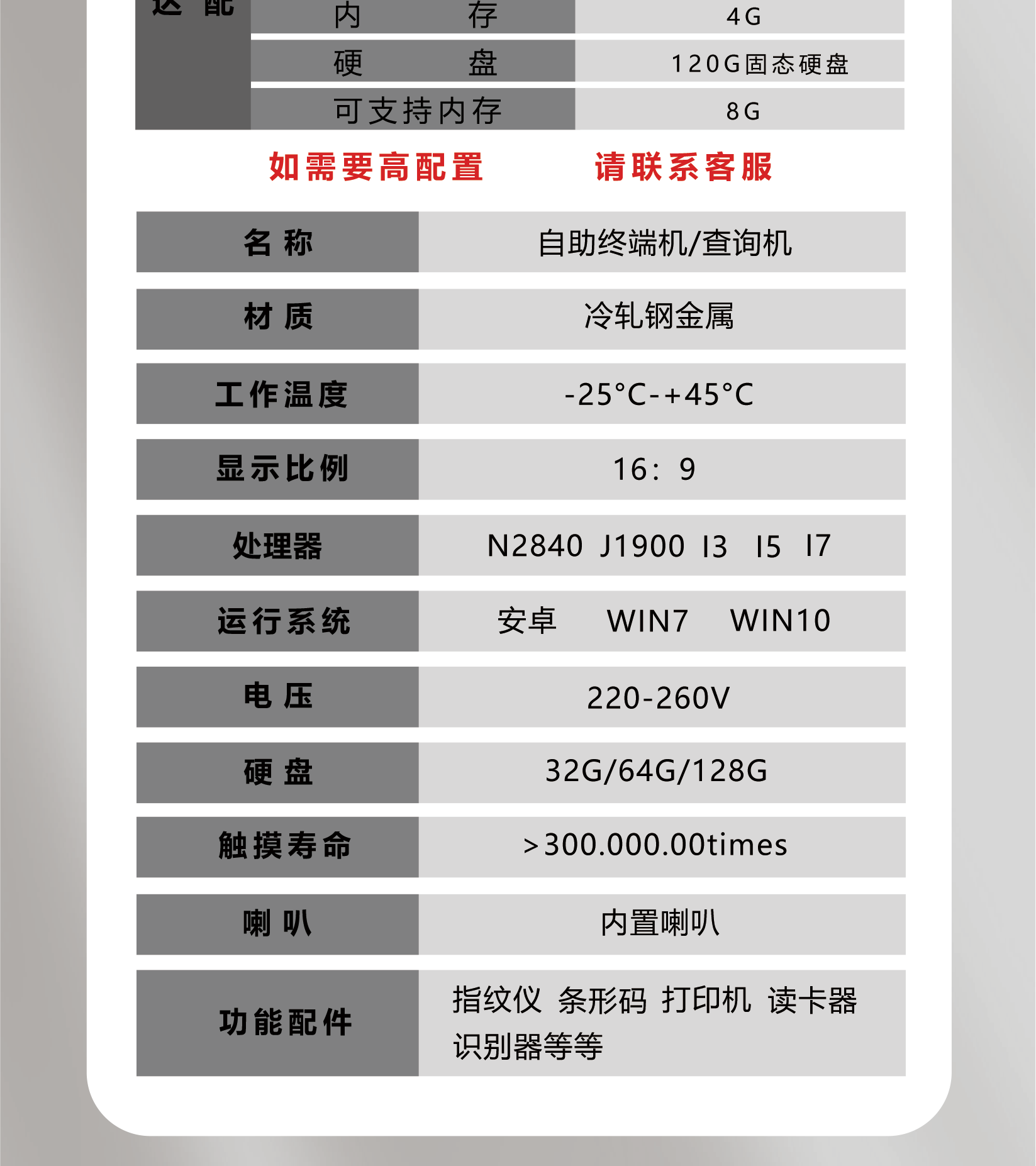 Terminal de autoservicio de 21,5 pulgadas + host estándar