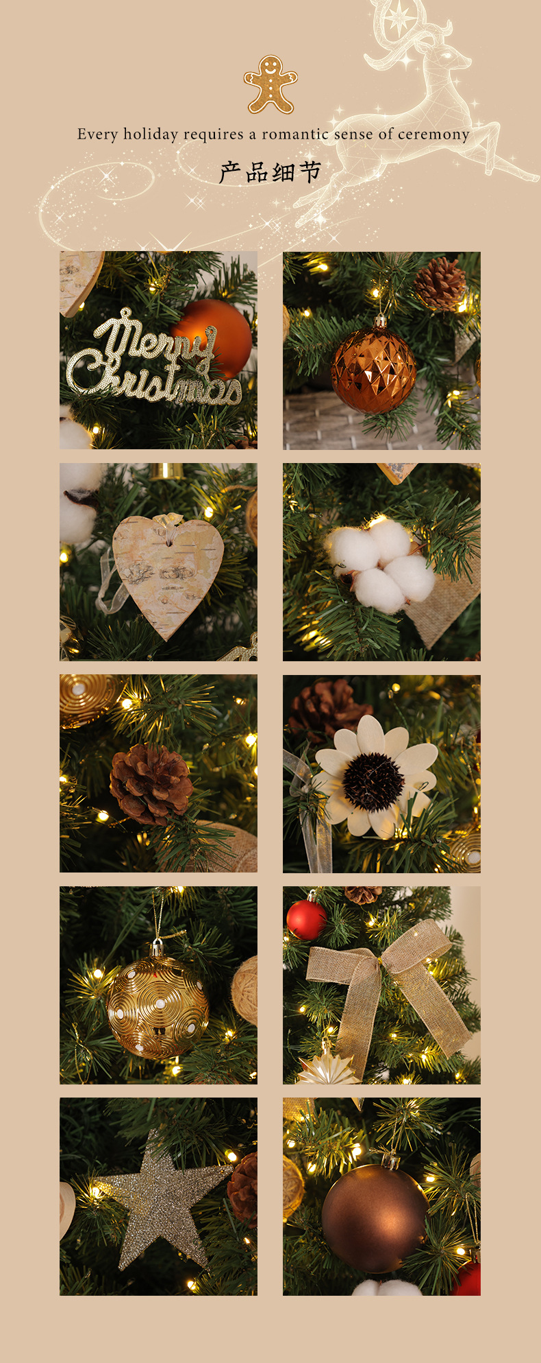| Número de artículo | Gran árbol de Navidad de algodón de color café |