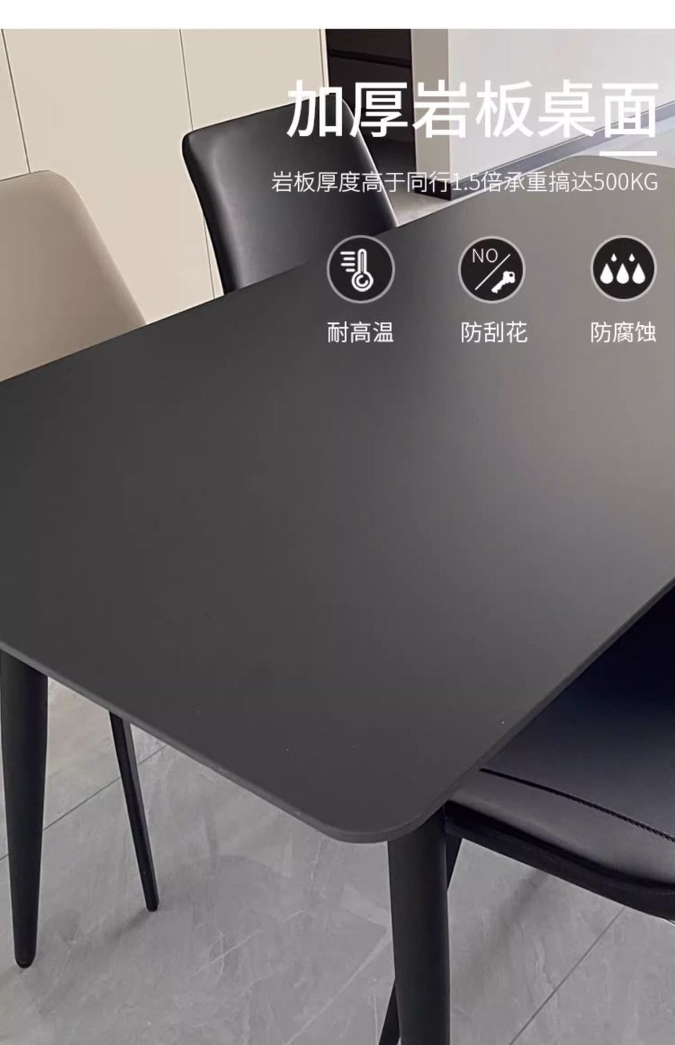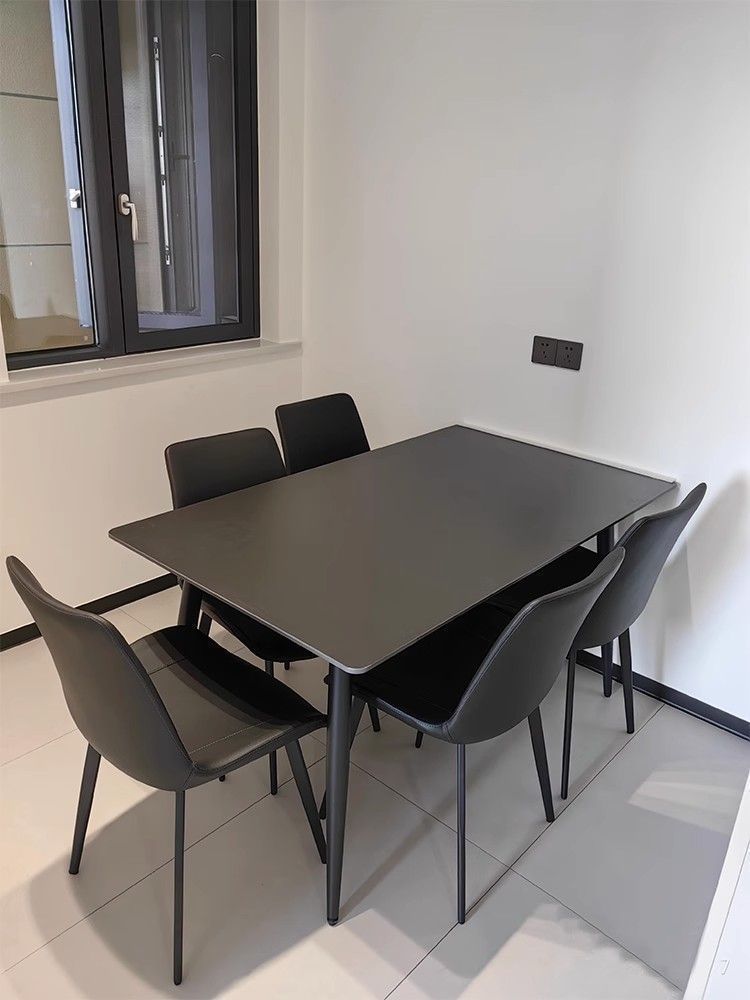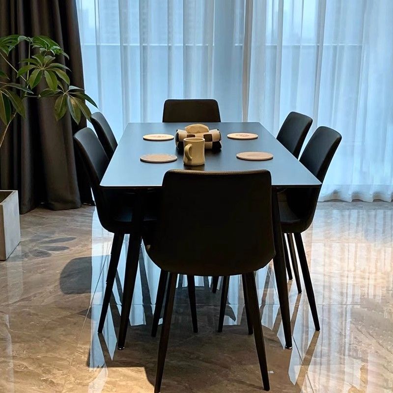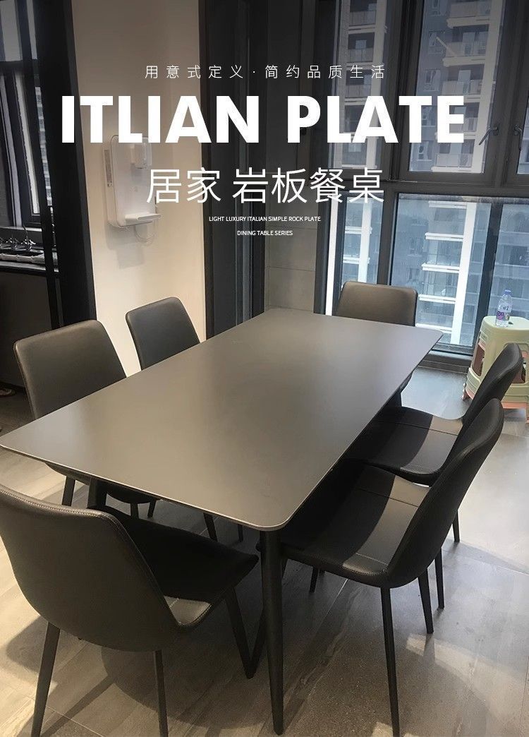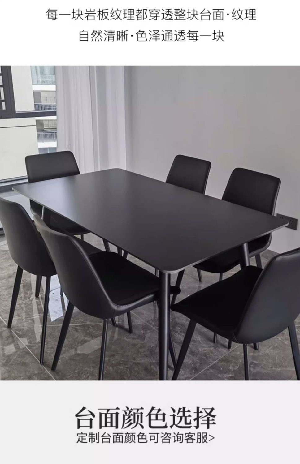 Mesa de comedor de tabla de roca minimalista italiana pequeña casa moderna rectangular combinación de mesa de comedor negra silla de mesa de ocho semillas mesa única