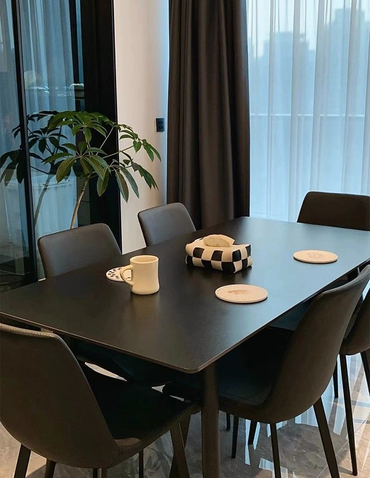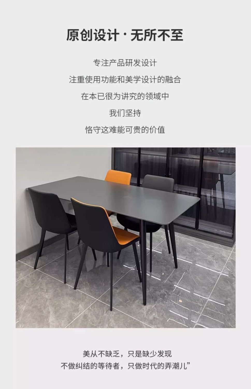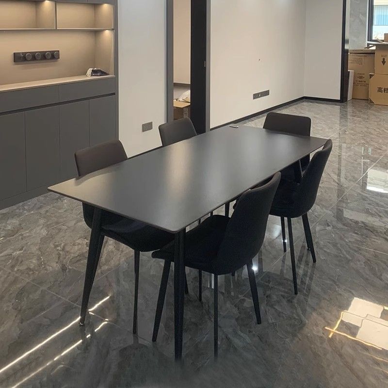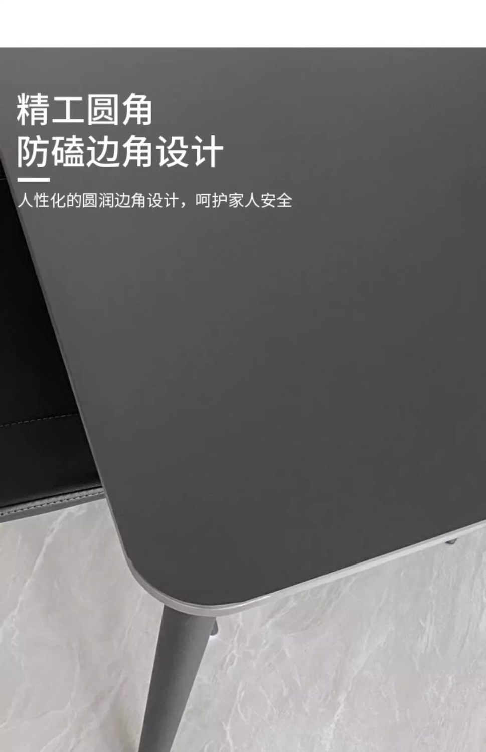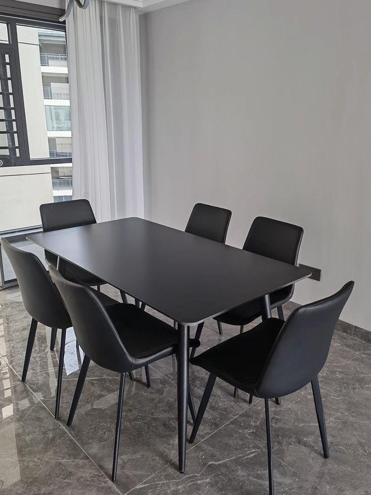 Mesa de comedor de tabla de roca minimalista italiana pequeña casa moderna rectangular combinación de mesa de comedor negra silla de mesa de ocho semillas mesa única