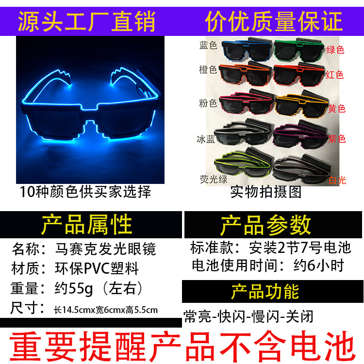 Gafas LED estilo Zhang Yunlei, gafas de mosaico con luces, gafas tecnológicas, accesorios para TikTok, KTV y bares