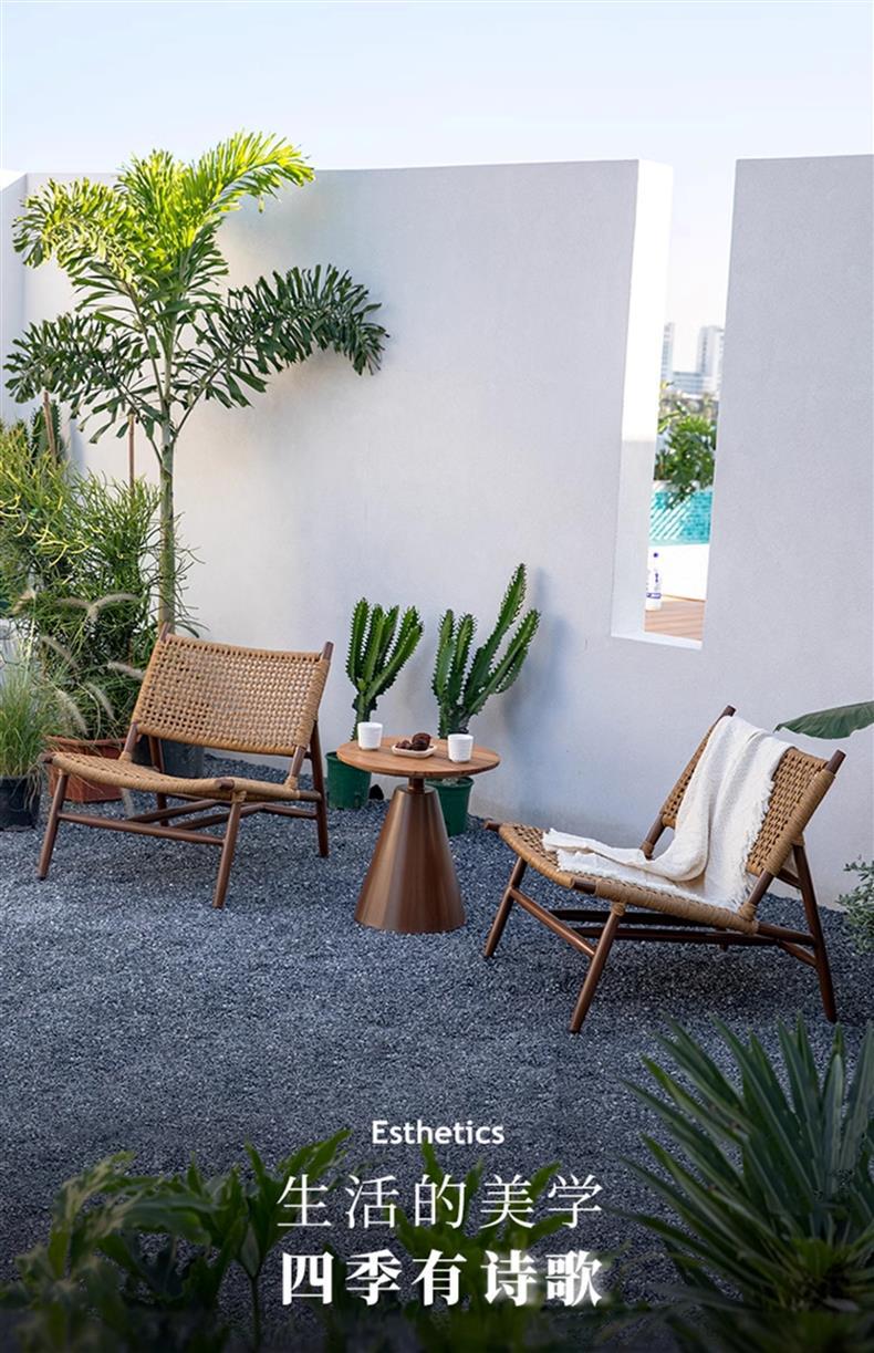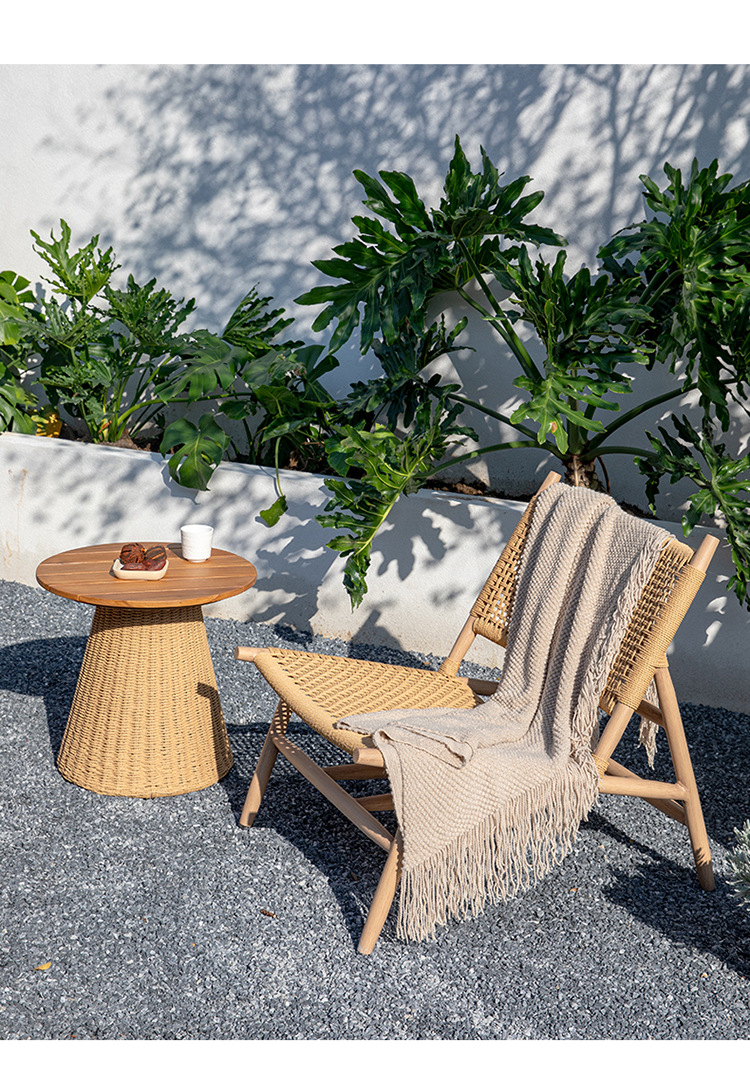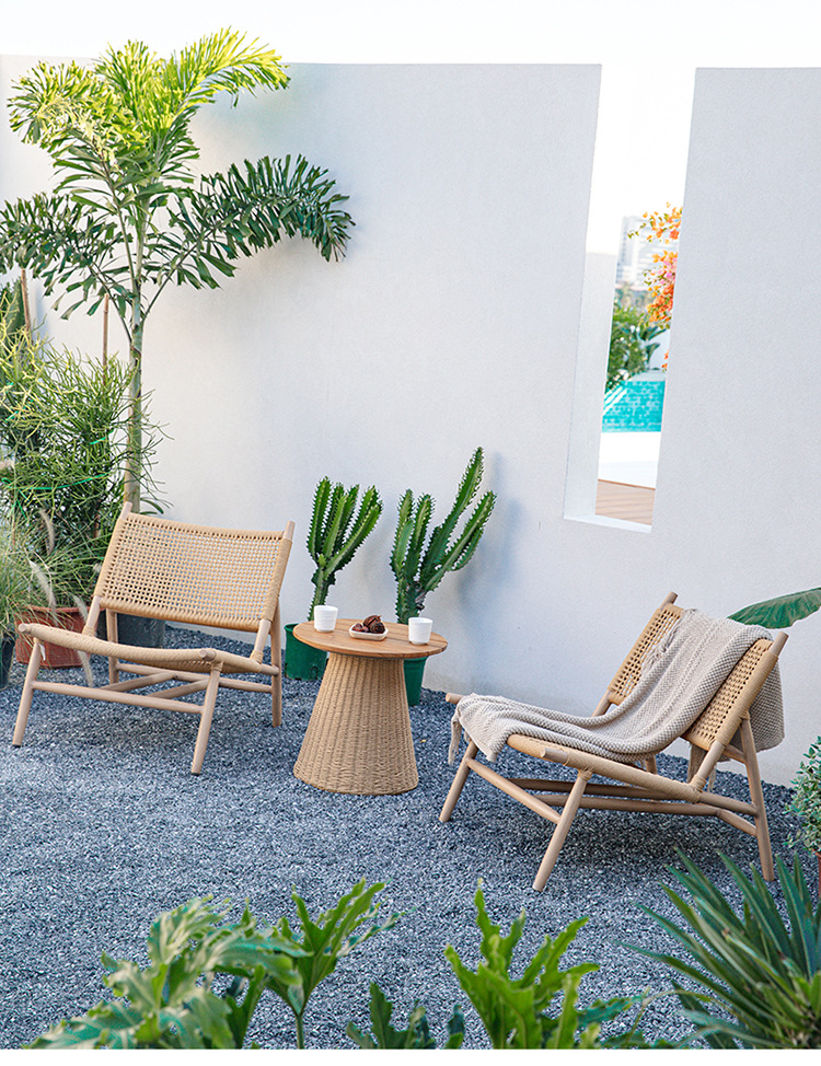 Mesa y silla de caña Jardín Sofá patio al aire libre Balcón al aire libre Villa silla trenzada terraza de caña