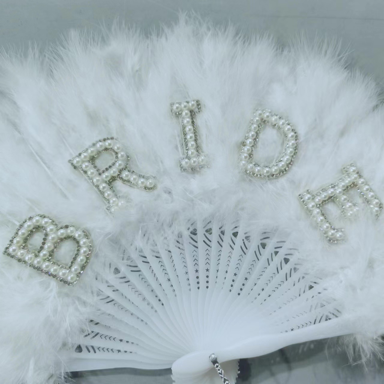 Plumas blancas de la novia perlas letras inglesas de la novia soltera regalos de decoración de boda