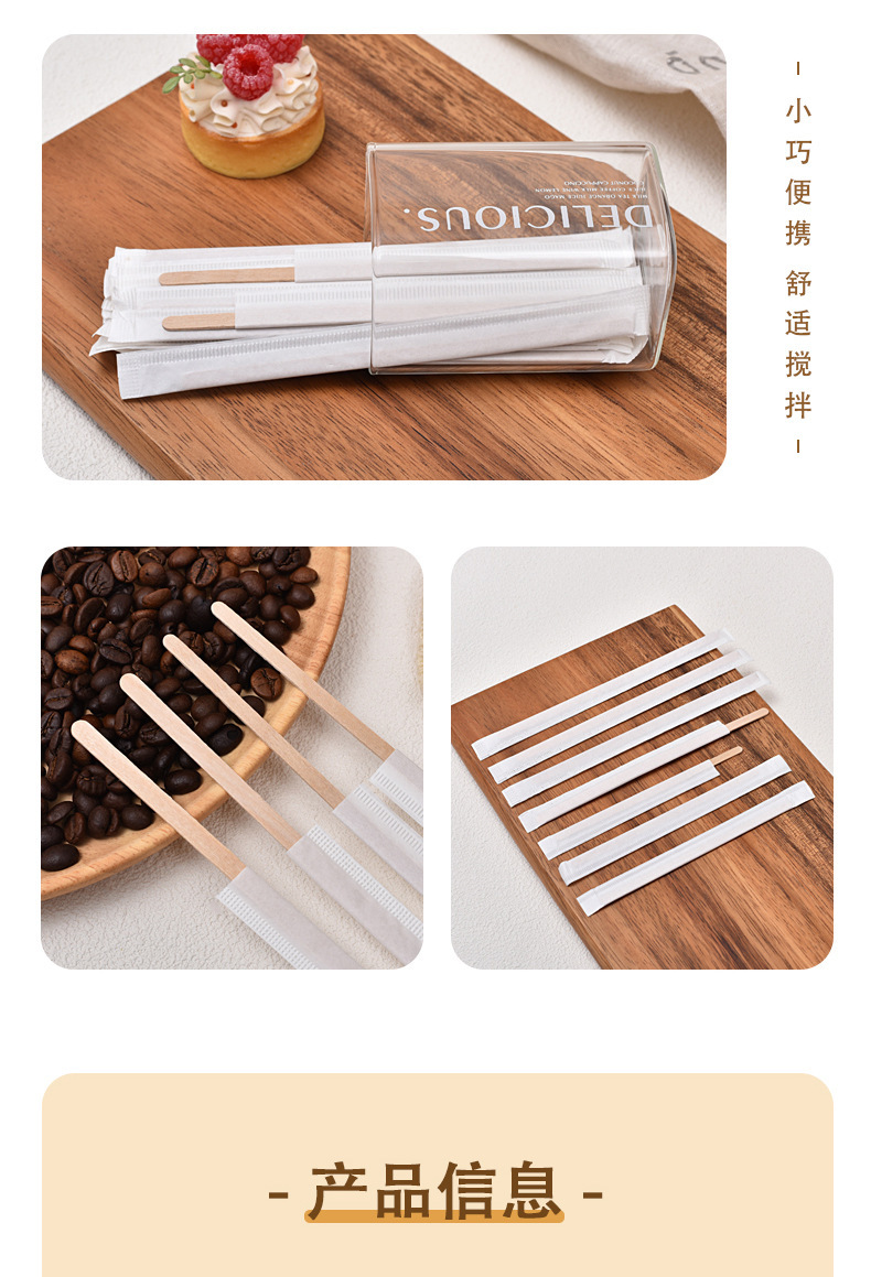 madera desechable barra de mezcla de café envasado independiente té de leche bebida caliente barra de mezcla de leche en polvo para bebés barra de mezcla de leche