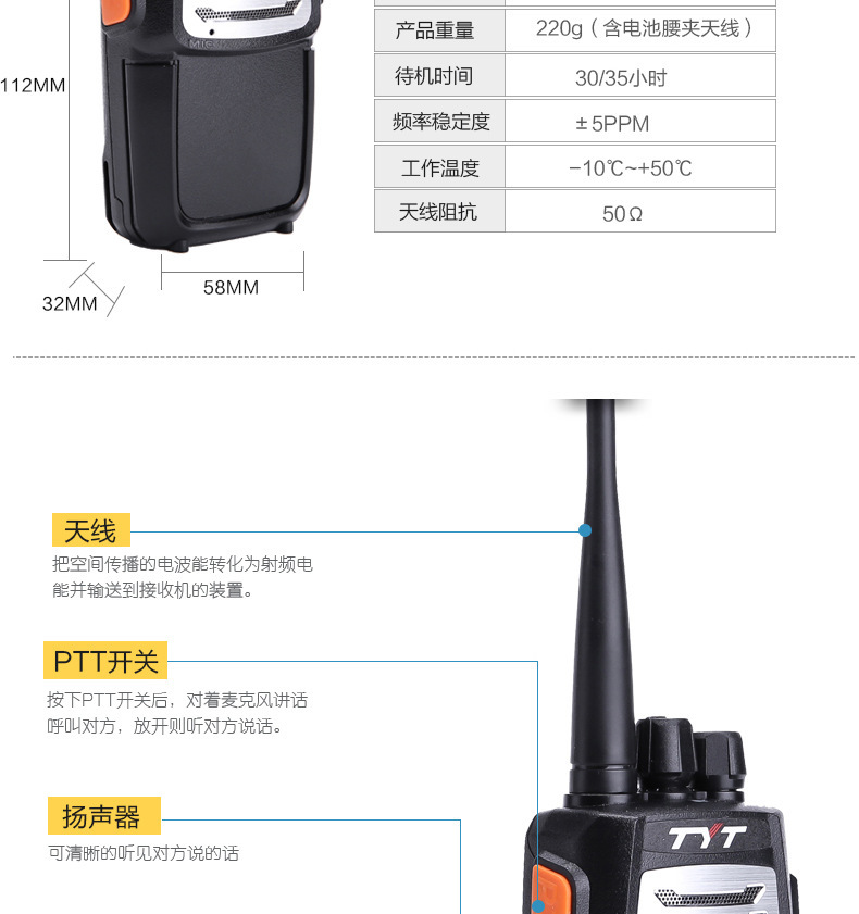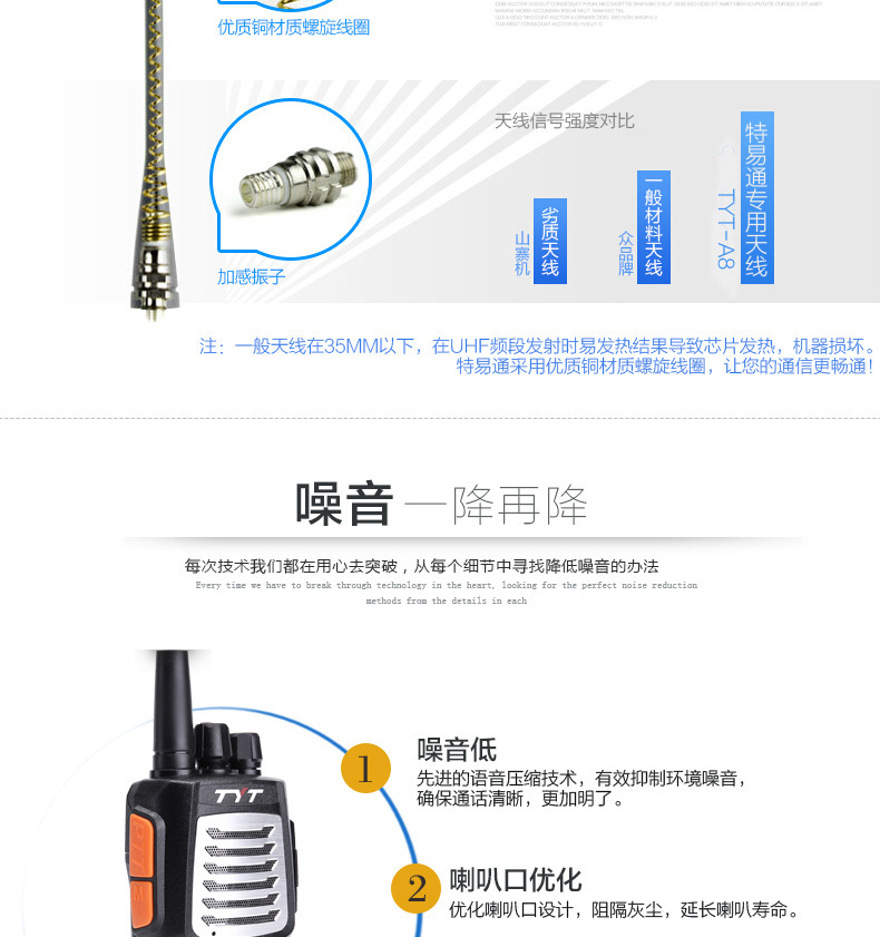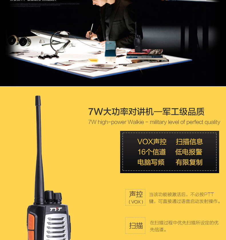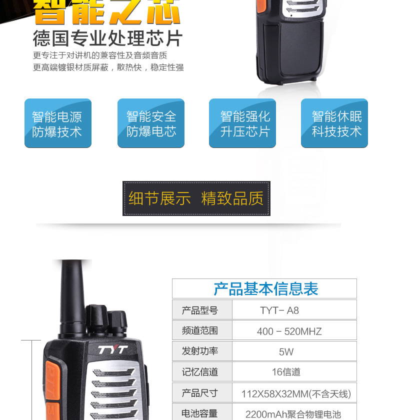 El walkie-talkie DE LA TYT-A8 de teyitong PARA EL walkie-talkie sin hilos del viaje del Poder Más Elevado 1-10km 7W del poder más elevado