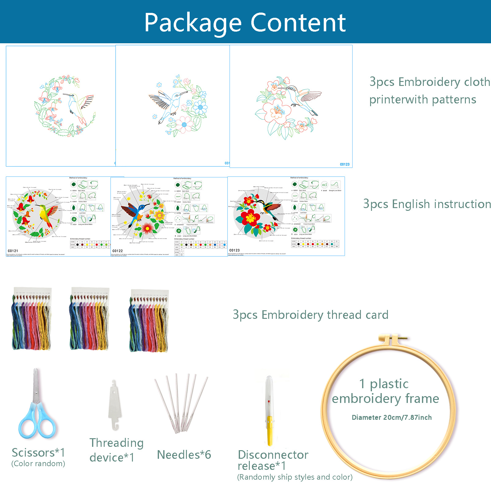 | Color | Comprar Colibrí y Orquídea de campana para enviar 1 tensión de bordado de 20cm y 1 tijera, 1 aguja de hoja de hierro, comprar Colibrí para enviar 1 tensión de bordado de 20cm y 1 tijera, 1 aguja de hoja de hierro, comprar Colibrí y flor de melocotón para enviar 1 tensión de bordado de 20cm y 1 tijera, 1 aguja de hoja de hierro, comprar tres juegos de flores y pájaros para enviar 1 tensión de bordado de 20cm y 1 desmontador de hilo de tijera. |