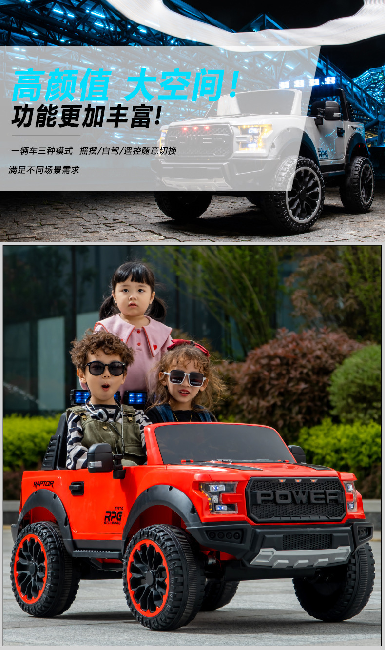 Coche eléctrico para niños, vehículo todoterreno de cuatro ruedas, cochecito grande de dos plazas, coche de control remoto para bebés, coche de juguete para niños, puede sentarse