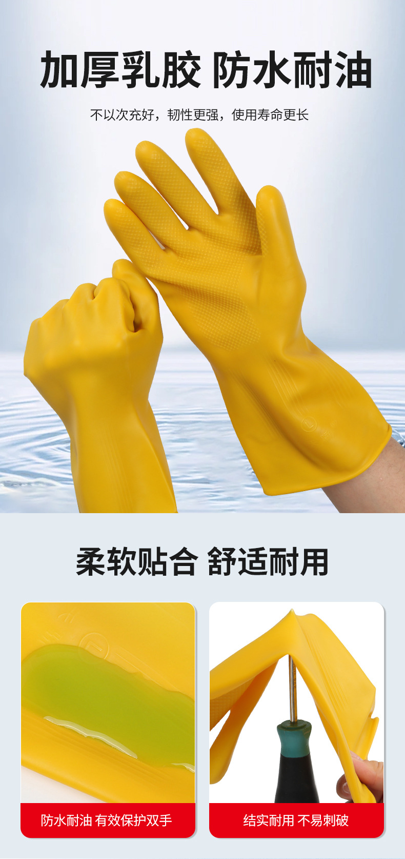 Nanyang guantes de látex al por mayor resistente al desgaste de protección de invierno de cocina lavavajillas hogar impermeable carne tendón guantes domésticos fabricante