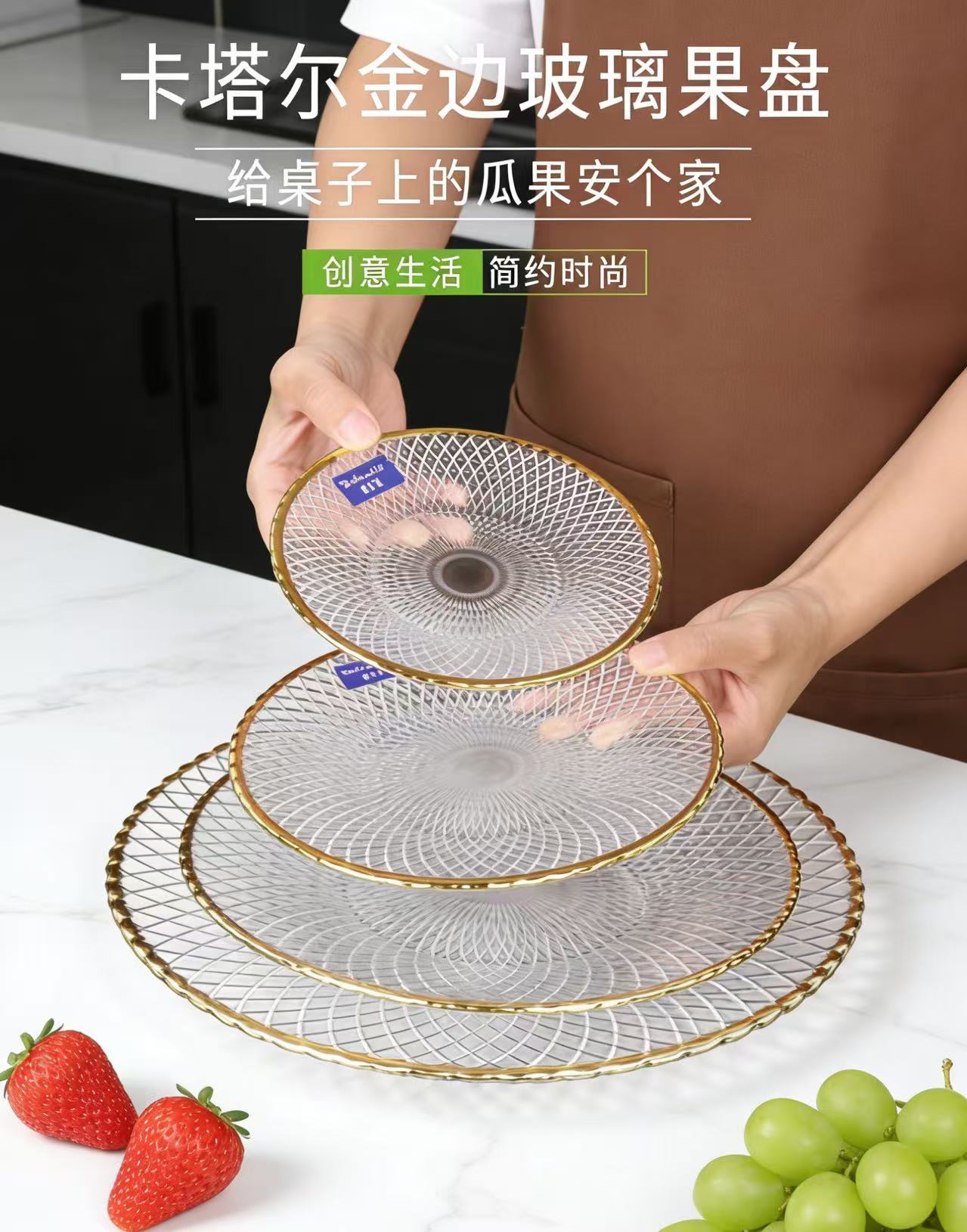 Platos de frutas de vidrio de Phnom Penh, platos de frutas de vidrio de lujo, platos de frutas secas de alta gama, KTV, platos de dulces creativos