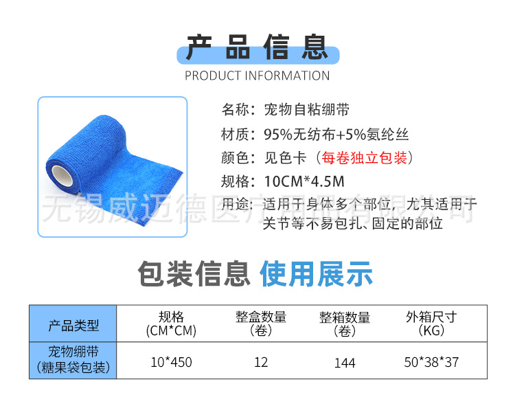 Weimida cross-border fábrica directa de pelo caballo Veterinaria Pet no tejido vendaje elástico 10cm vendaje autoadhesivo