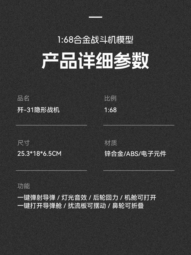 ![[Supergrande] J-31 puede lanzar misiles-negro](https://cbu01.alicdn.com/img/ibank/O1CN018m0Zm01UtrEZnWUWT_!!2216605942576-0-cib.jpg)