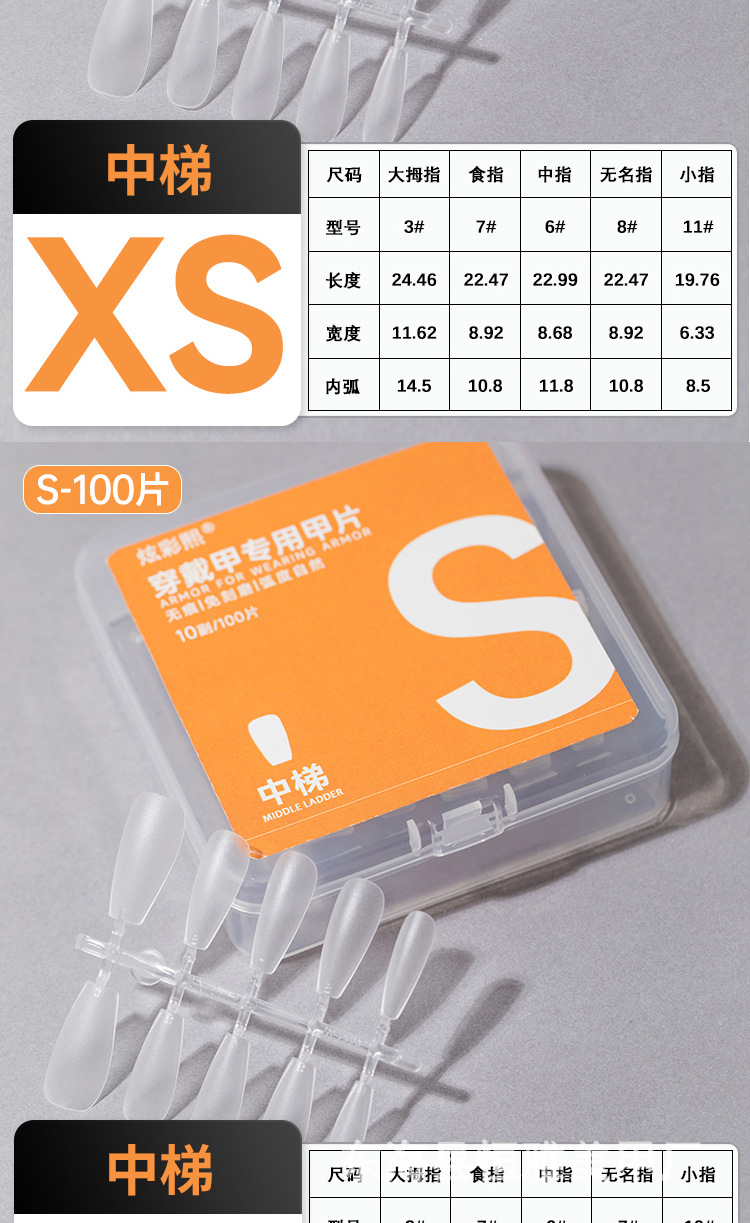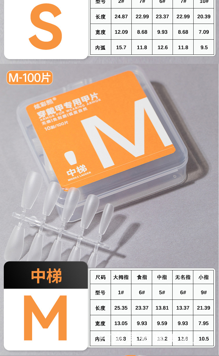 Clase de uñas de código de división sin grabar esmalte de manicuría especial de almendras largas uñas cortas para usar uñas transparentes sin marcas escalera larga media larga