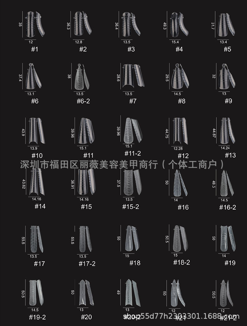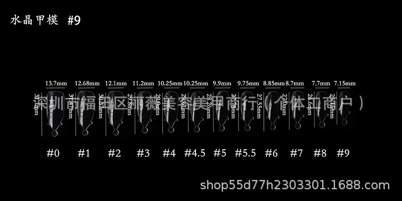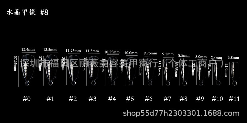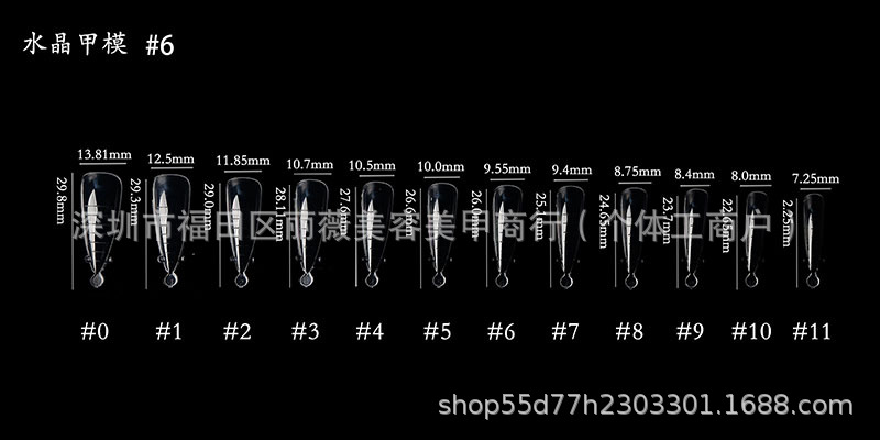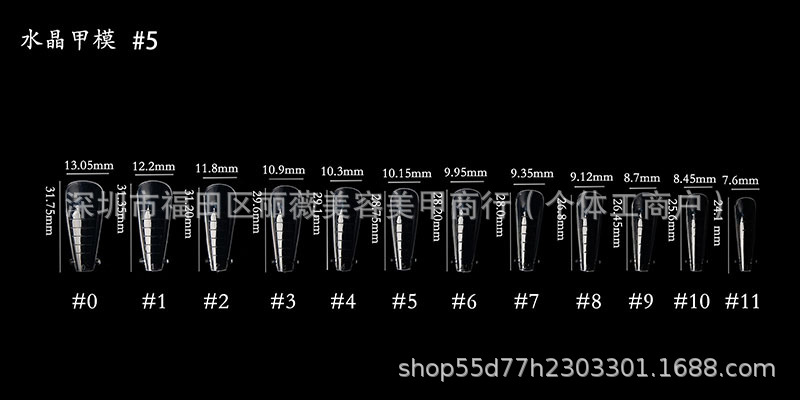 Uña de manicure cristal molde de uñas molde de uñas de almendras escala sin papel molde de uñas de almendras molde de uñas de extensión