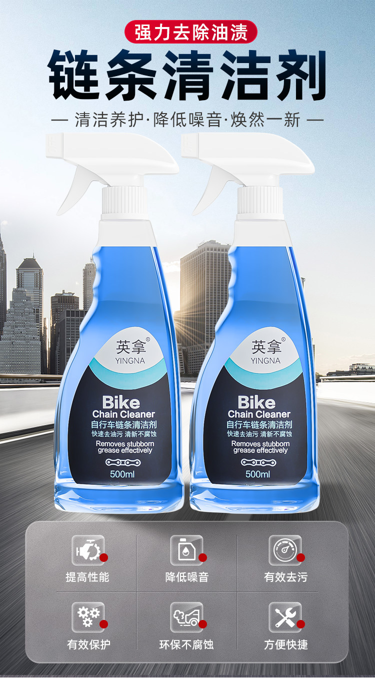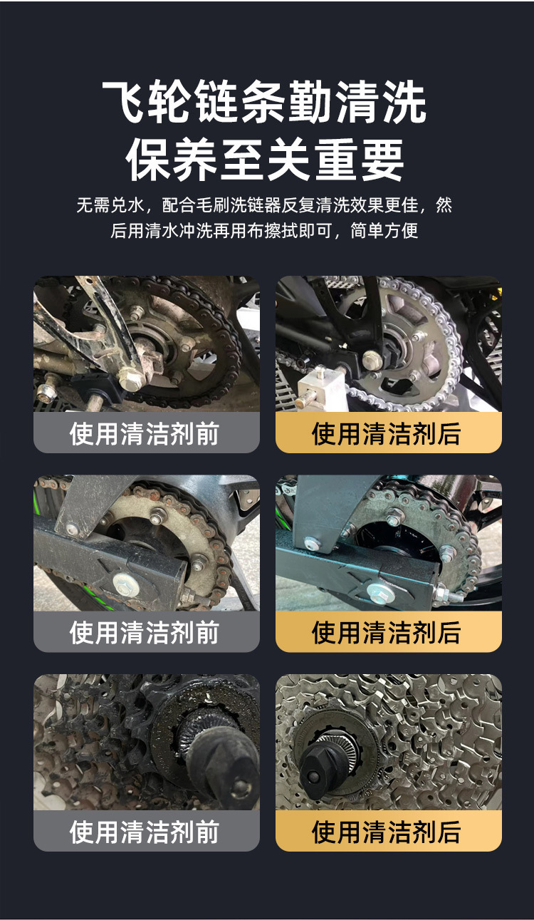 Limpiador de cadena + aceite de cadena autorociado (toalla de entrega + guantes dingqing + cepillo de bicicleta de montaña)