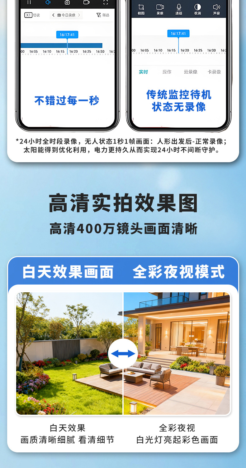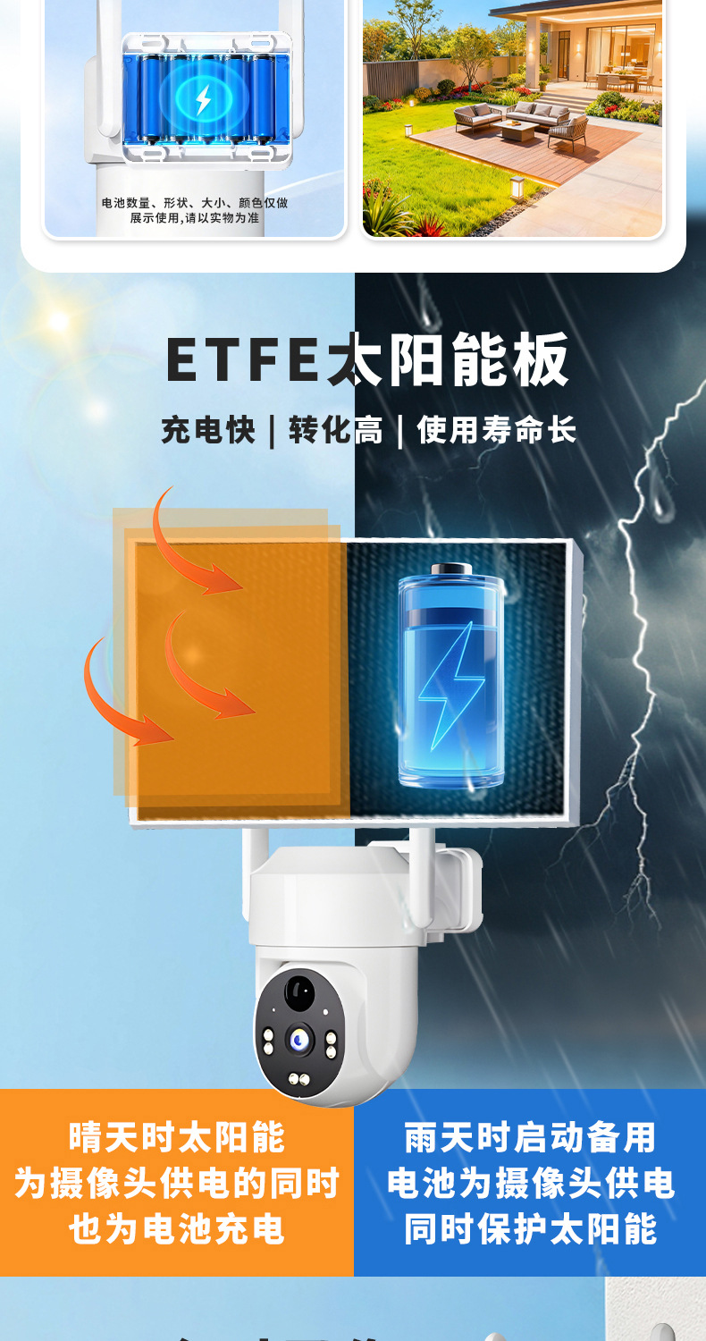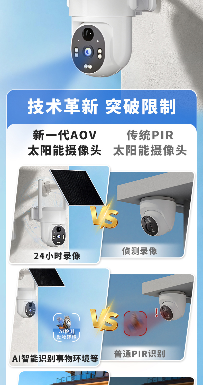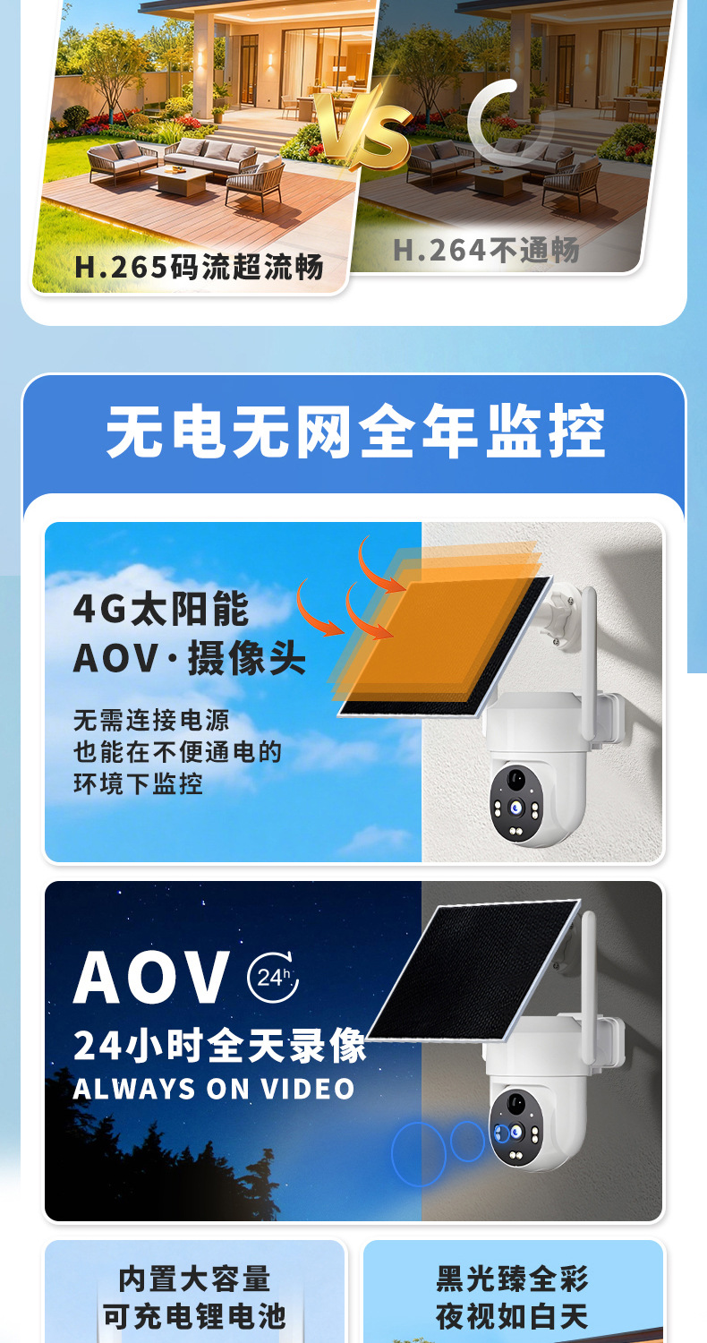 Cámara de vigilancia solar sin electricidad sin red de toda la vida sin flujo de granja al aire libre inalámbrica cámara de alta definición AOV