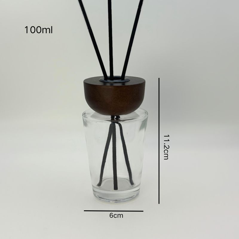 Botella vacía europea simple de alto valor nominal botella de fragancia de madera sólida botella de aceite esencial de caña cónica sin fuego 28 dientes botella de vidrio