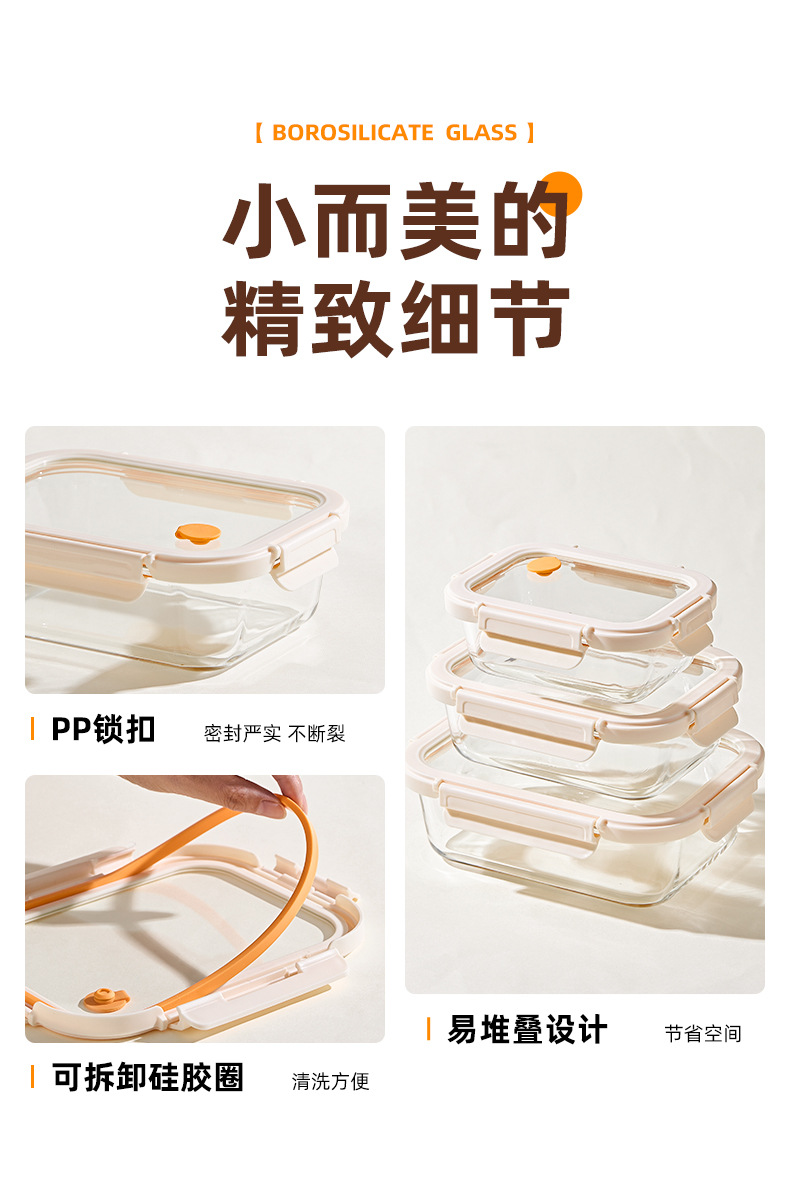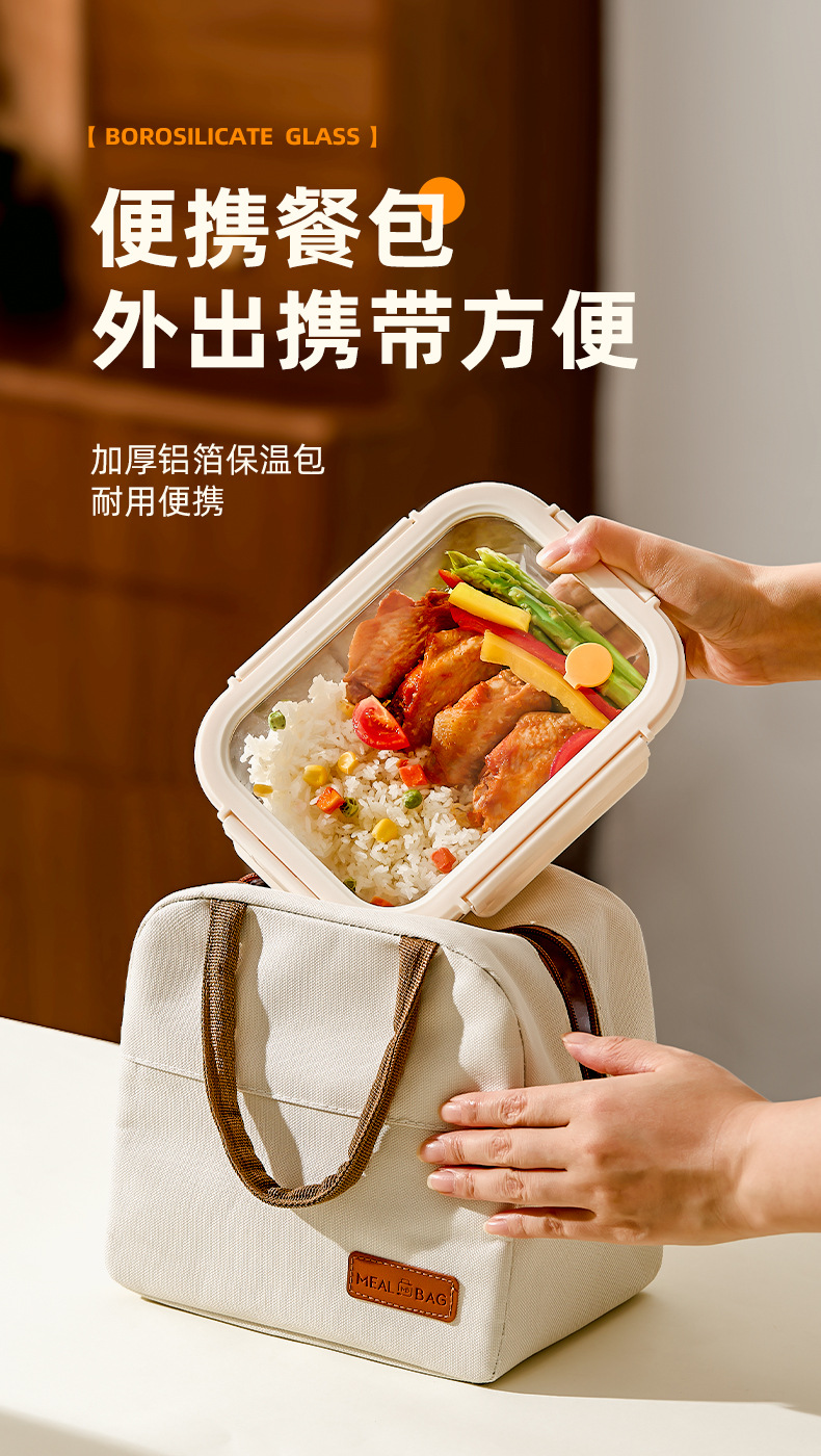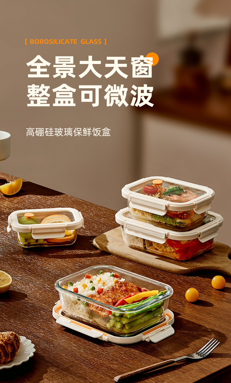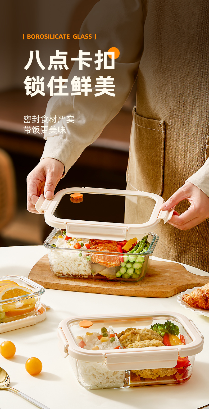Caja de almuerzo de vidrio de hebilla de Hilero para oficina calentamiento de microondas caja de almuerzo especial tazón caja de preservación con cubierta de partición