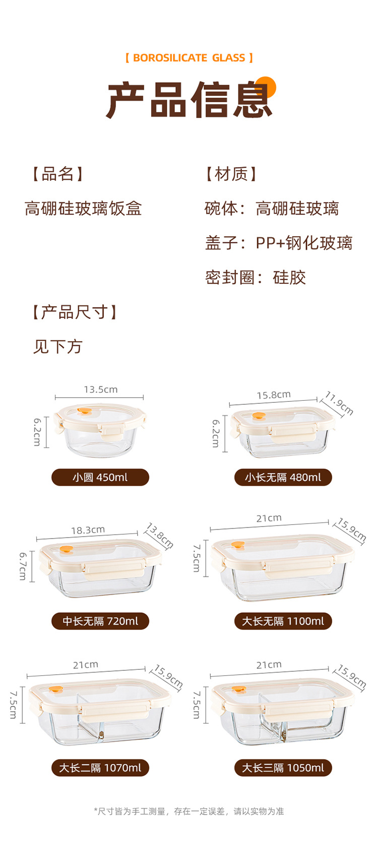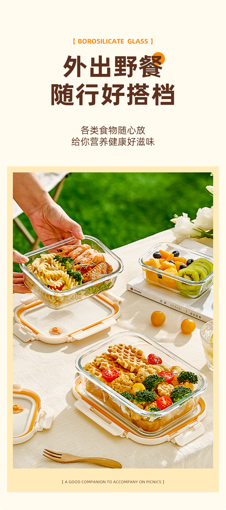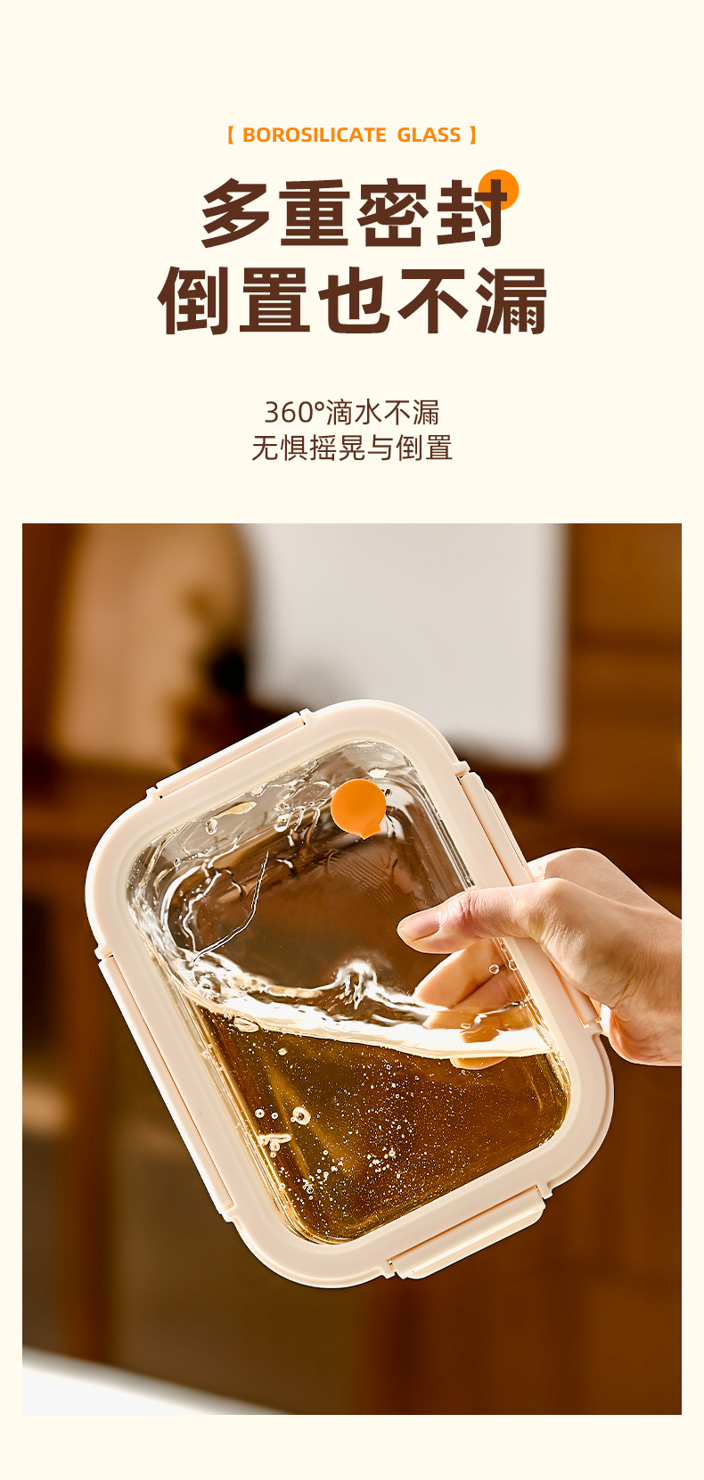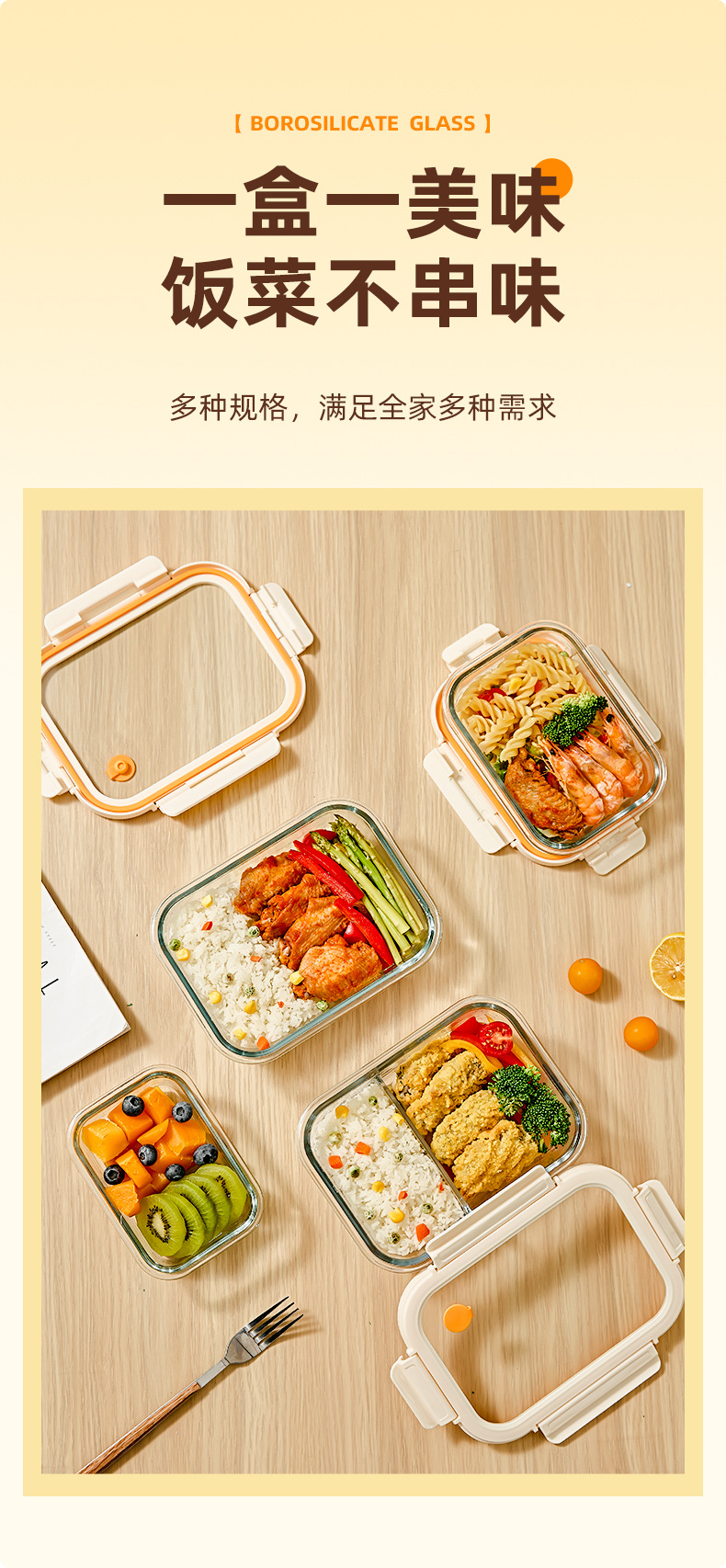 Caja de almuerzo de vidrio de hebilla de Hilero para oficina calentamiento de microondas caja de almuerzo especial tazón caja de preservación con cubierta de partición