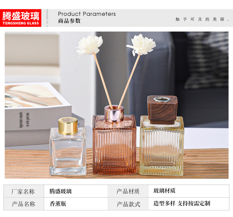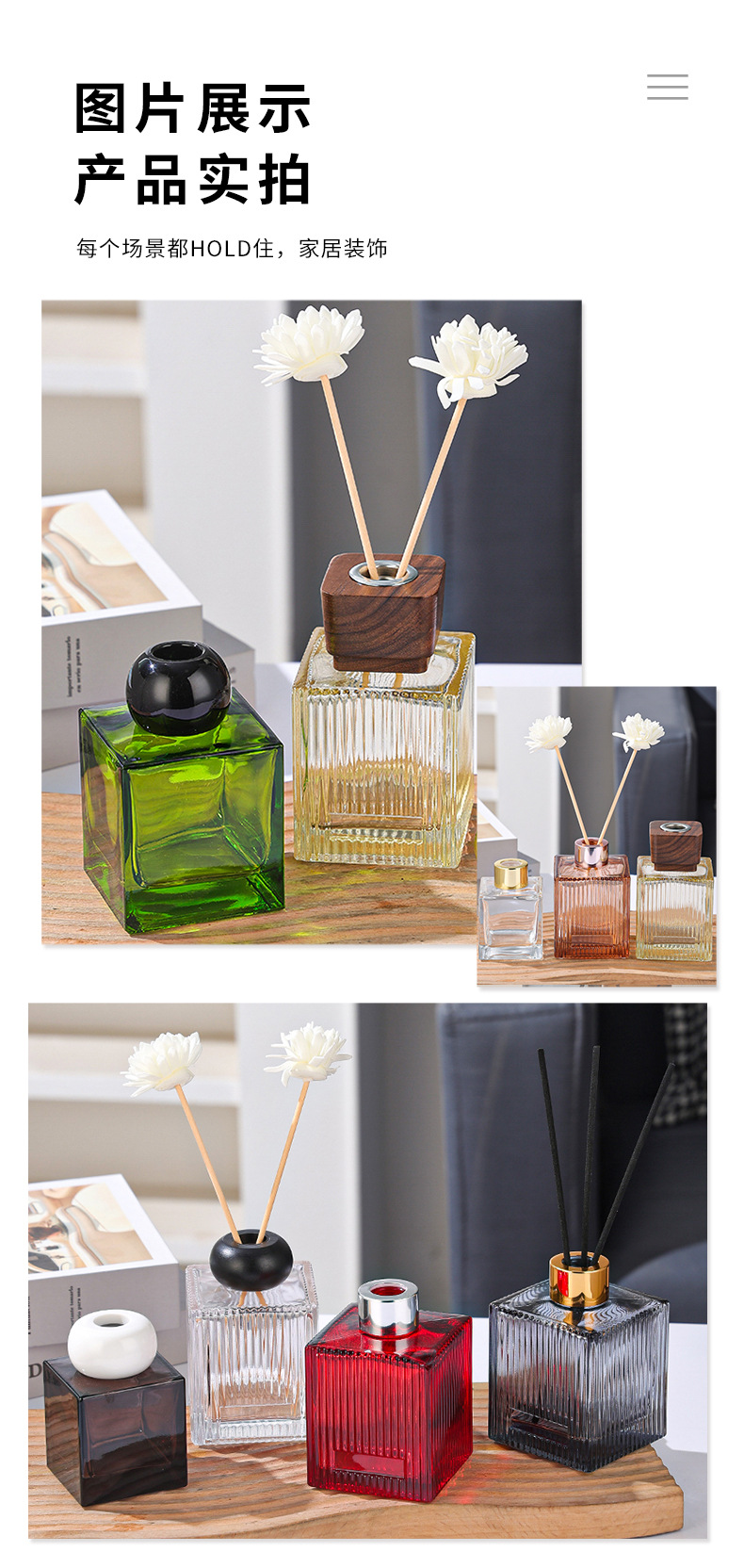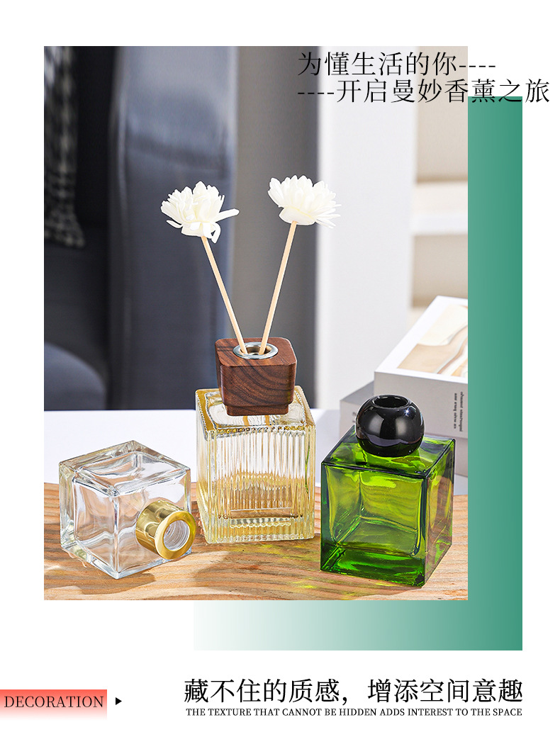 Botella de fragancia cuadrada vertical botella de perfume decoración para el hogar decoración botella de fragancia de vidrio botella de fragancia