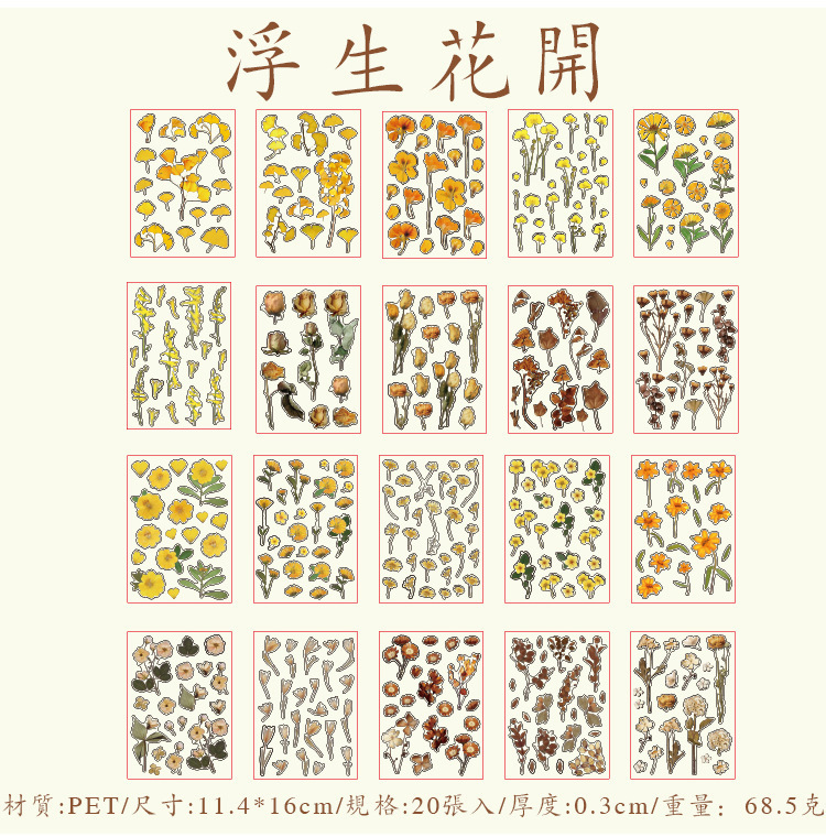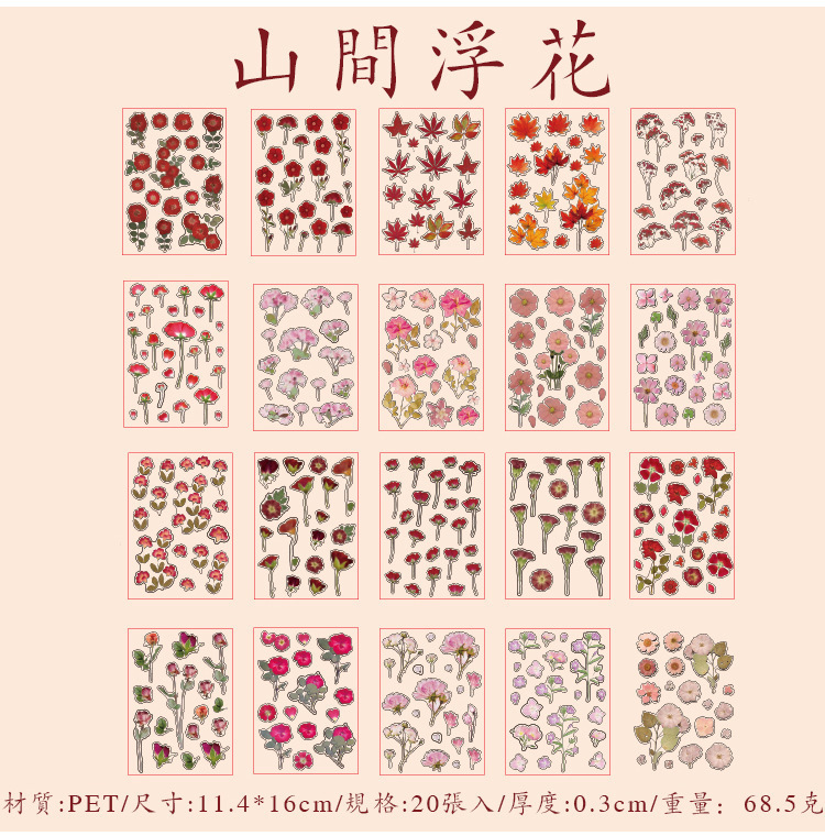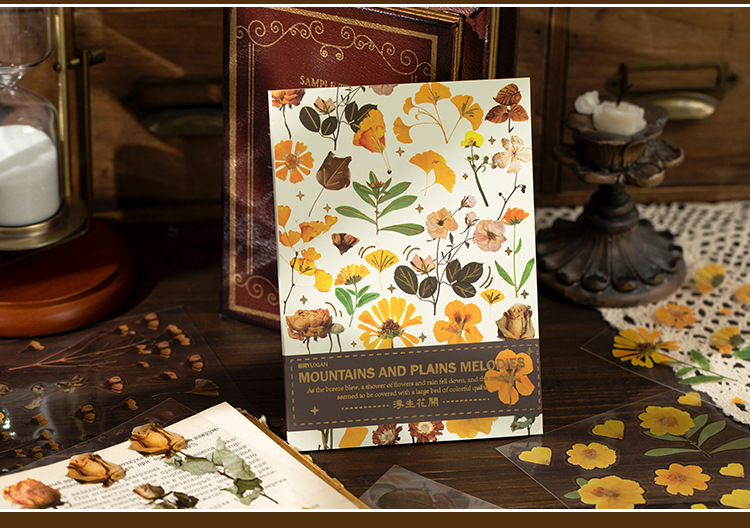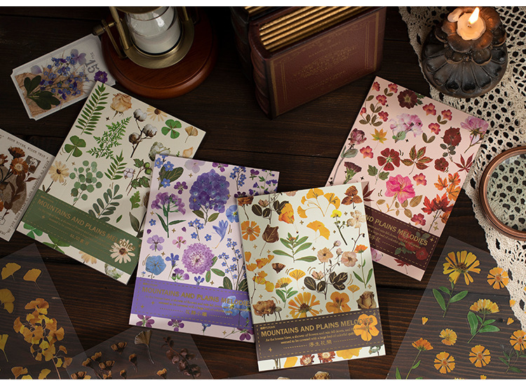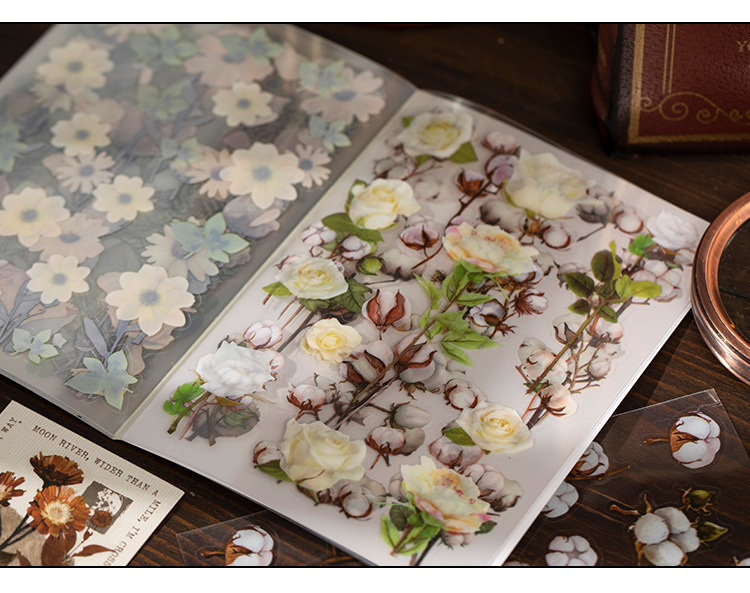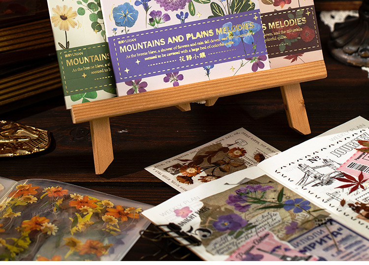 Pegatinas de mascotas melodías de montaña ociosas este estilo retro imitación de materiales florales cuentas de mano marcadores decoración collage base