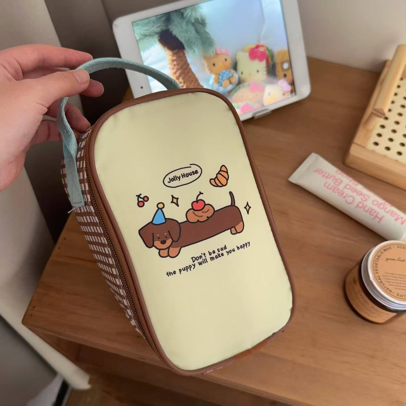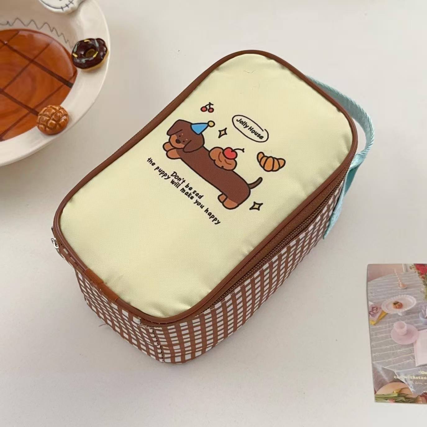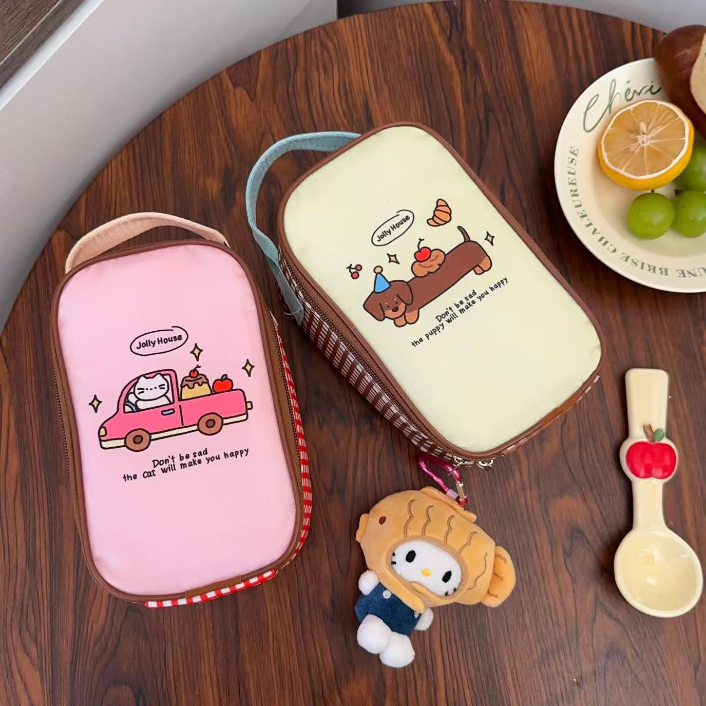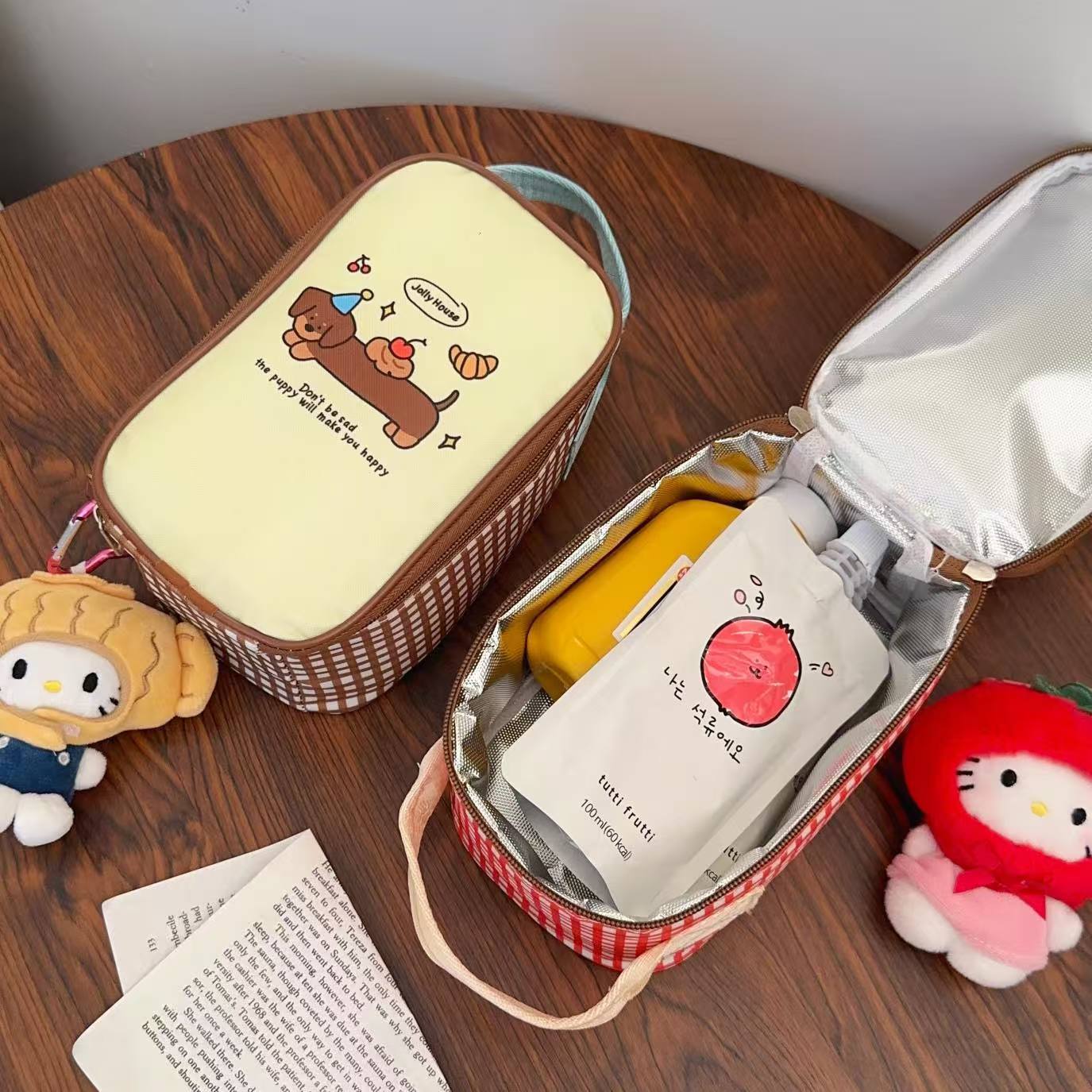 estilo japonés de dibujos animados cachorro bolsa de almuerzo de aluminio grueso bolsa de mano bolsa de oficina mini bolsa de almuerzo