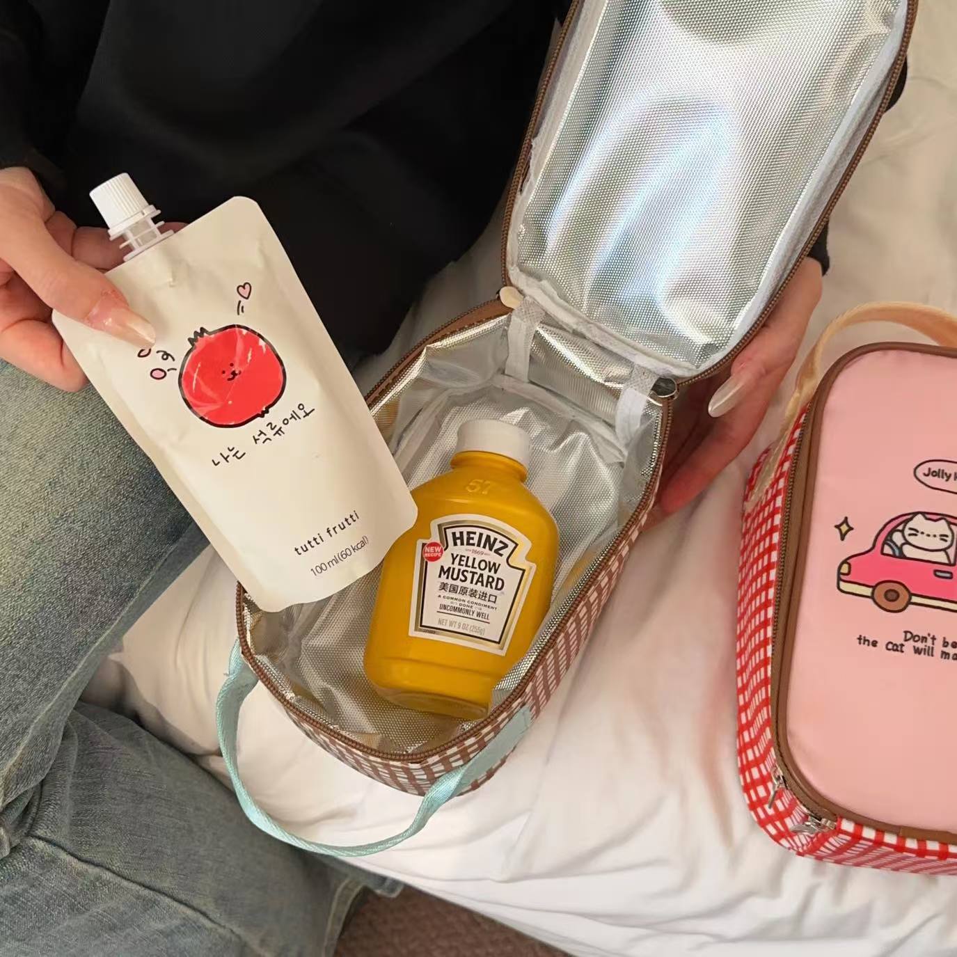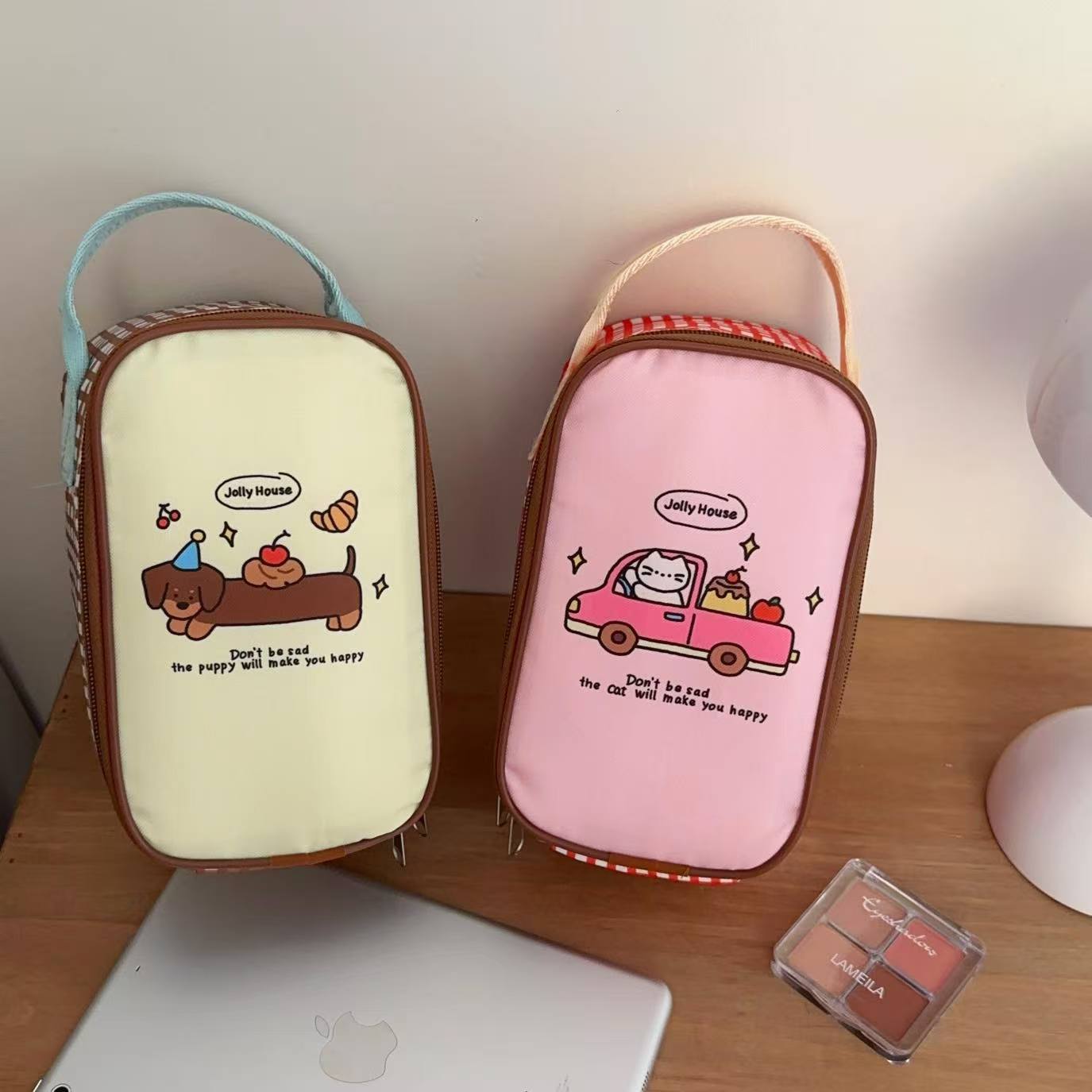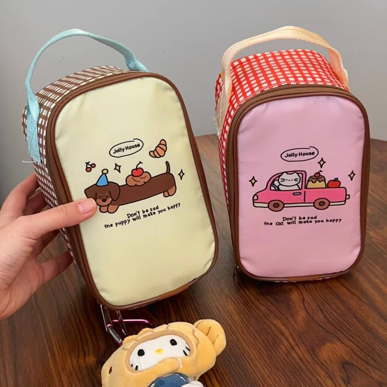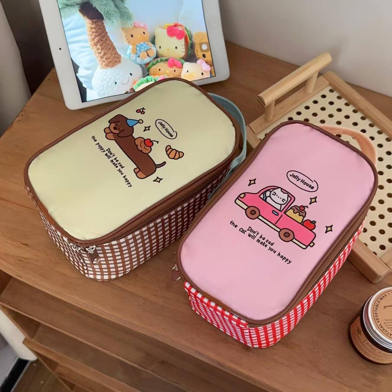 estilo japonés de dibujos animados cachorro bolsa de almuerzo de aluminio grueso bolsa de mano bolsa de oficina mini bolsa de almuerzo
