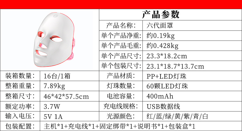 Máscara de belleza colorida lámpara LED instrumento de belleza facial fotón doméstico rejuvenecimiento de la piel introducidor de cuidados de la piel
