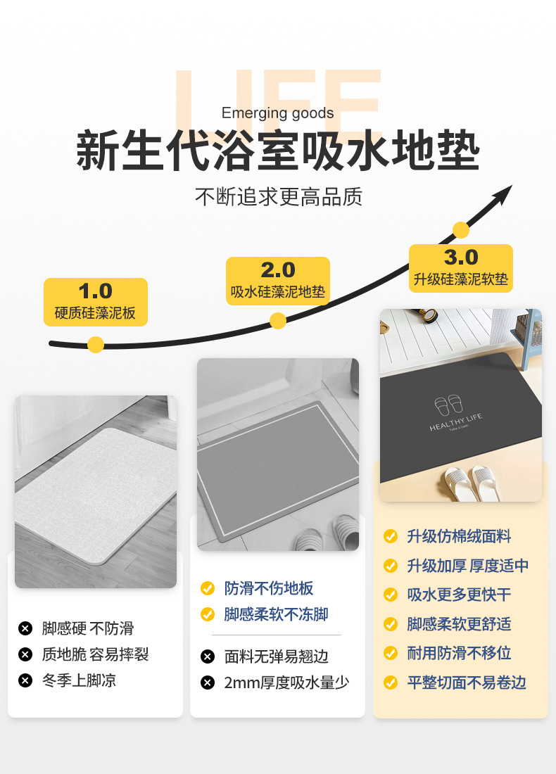 Transfronterizos modernos baños geométricos simples hotel doméstico antideslizante anticaídas alfombra de barro de diatomeas de absorción de agua secado rápido y fácil de limpiar