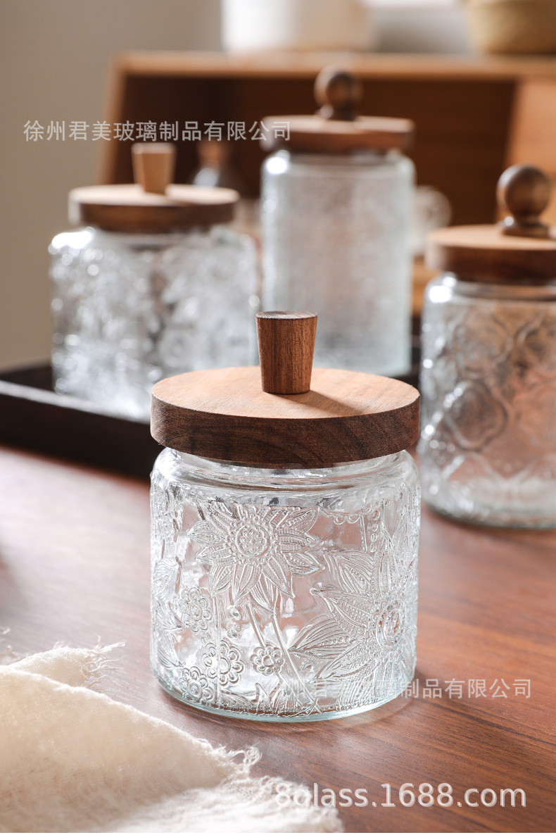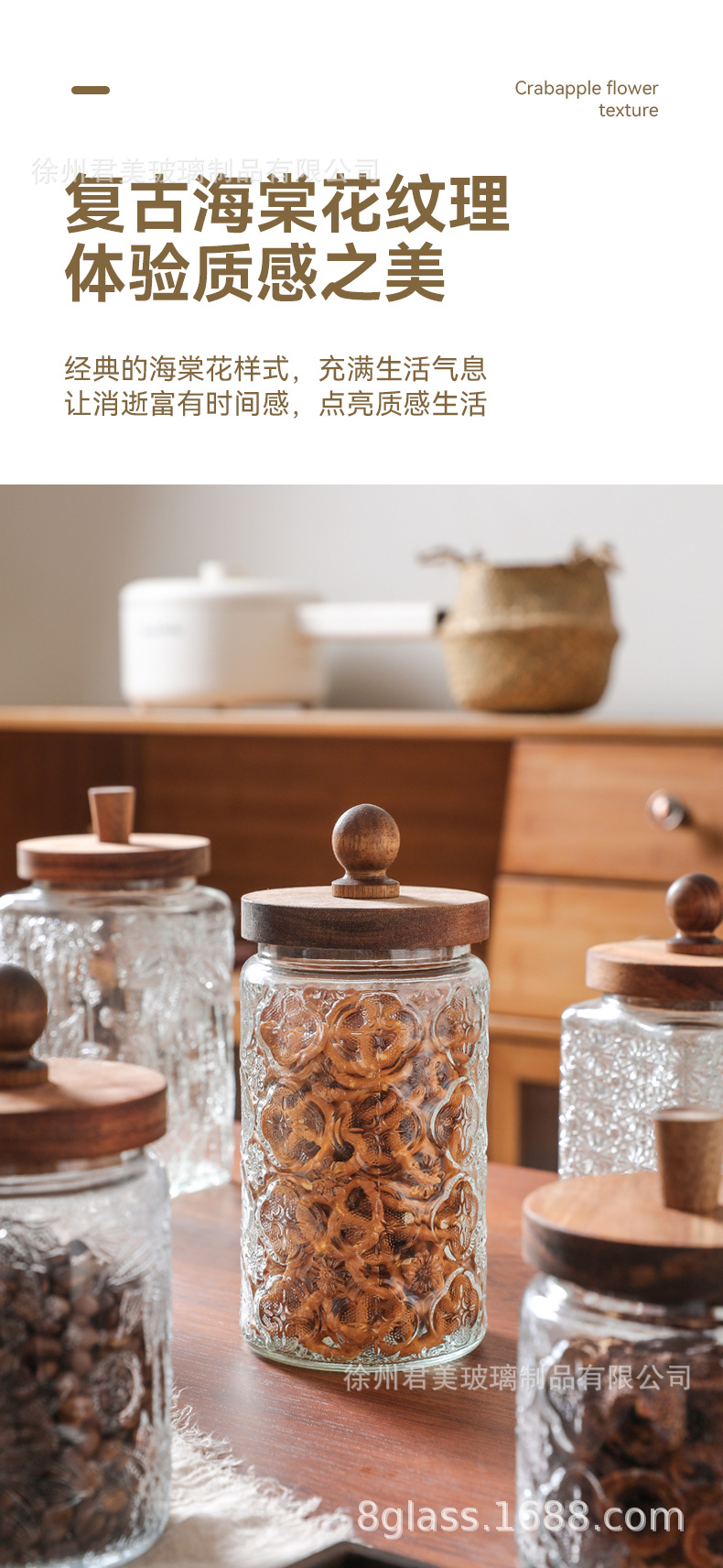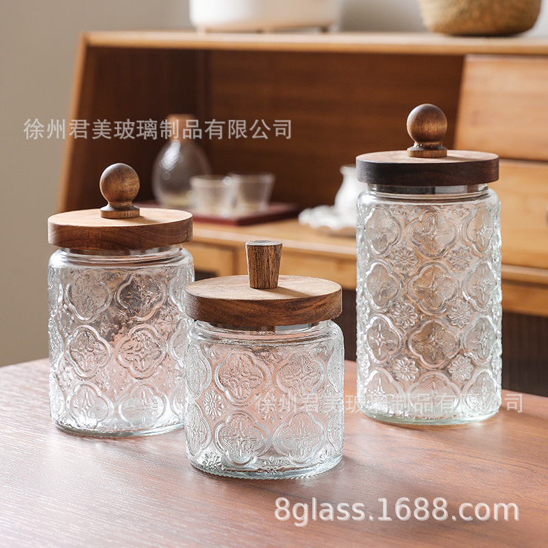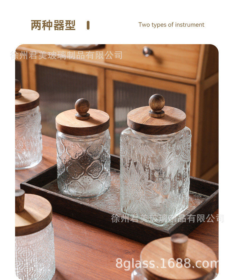 Tanque de almacenamiento de vidrio retro Begonia casera granos naranja frutas secas lata de almacenamiento de té lata de Acacia cubierta de madera mayorista