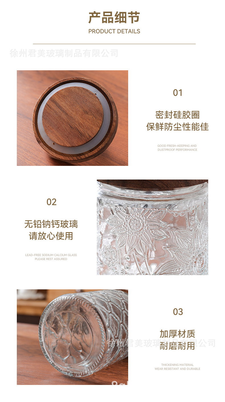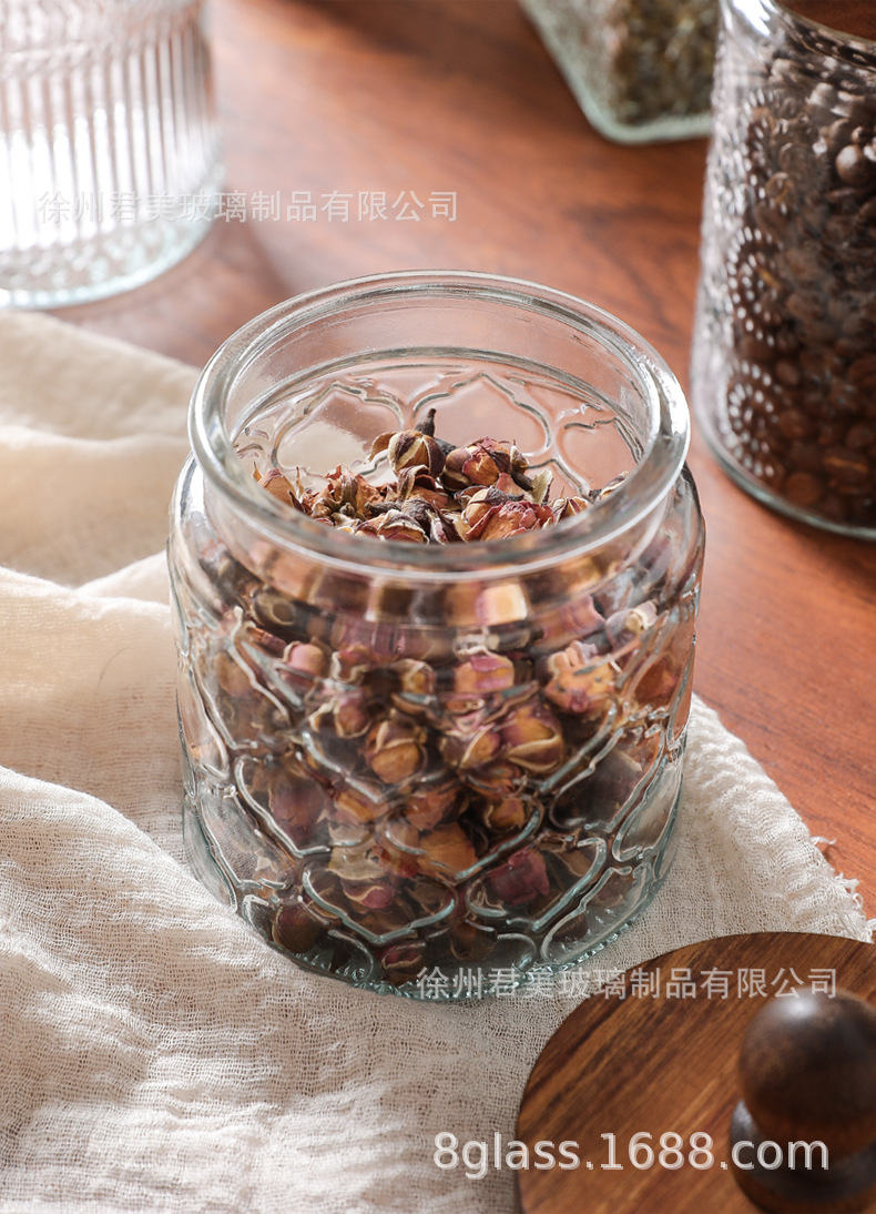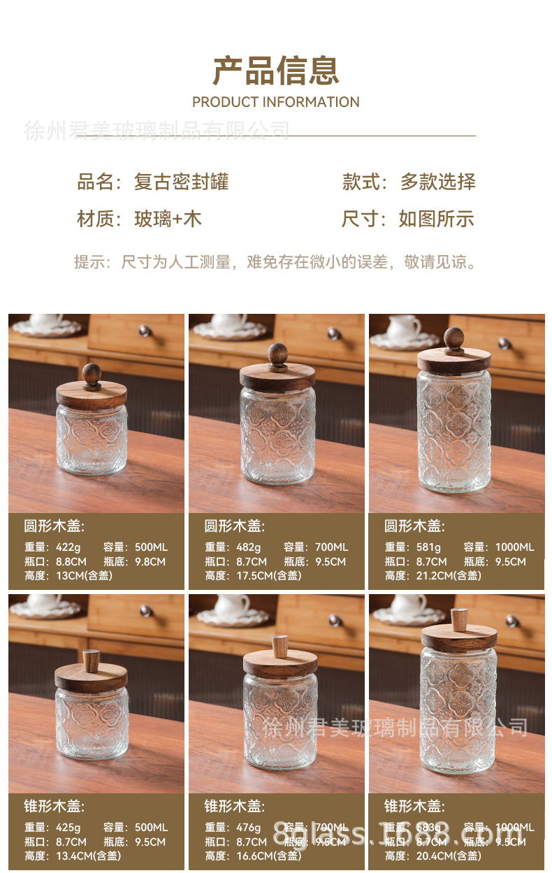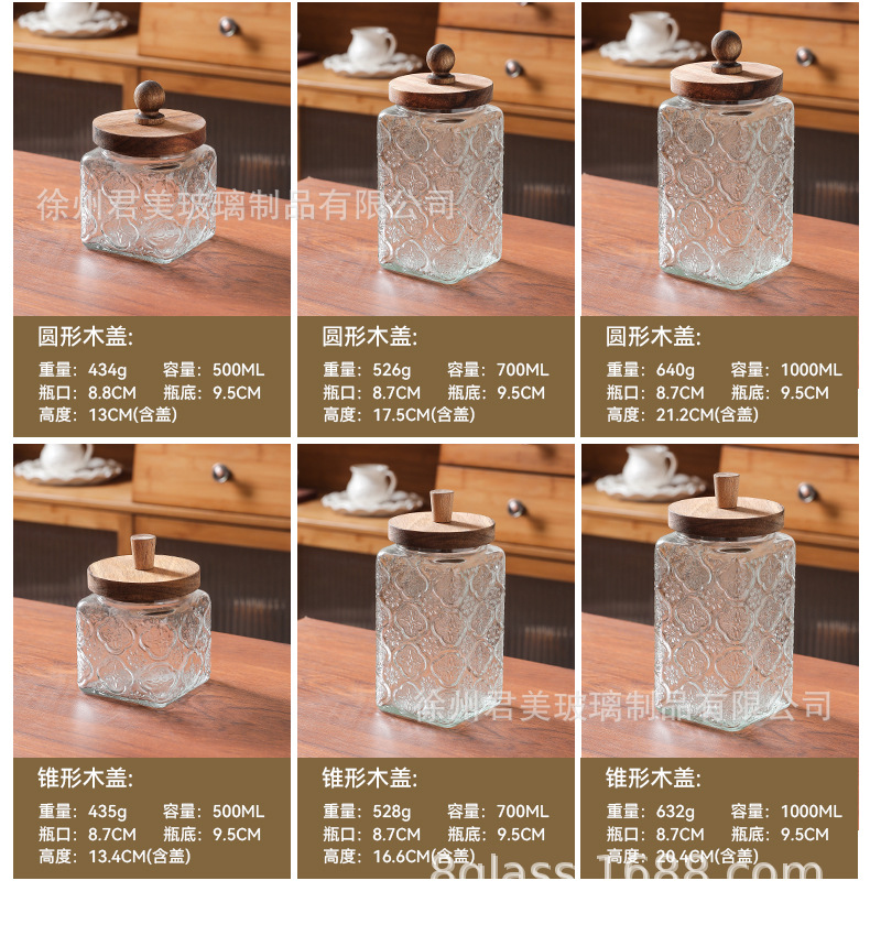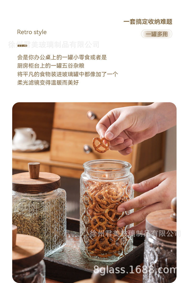 Tanque de almacenamiento de vidrio retro Begonia casera granos naranja frutas secas lata de almacenamiento de té lata de Acacia cubierta de madera mayorista