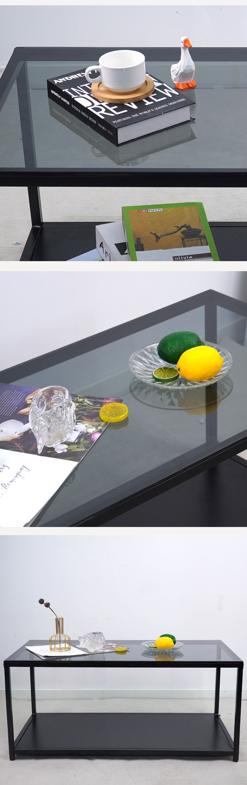 Mesa de té de vidrio templado doméstico moderna simple mesa de té negra sala de estar mesa de té rectangular mesa de té de oficina