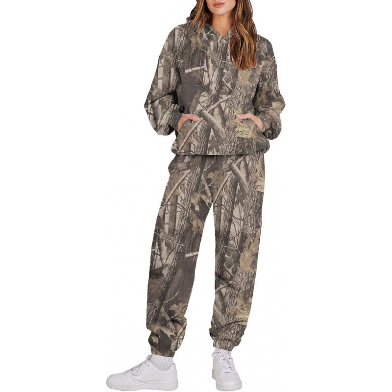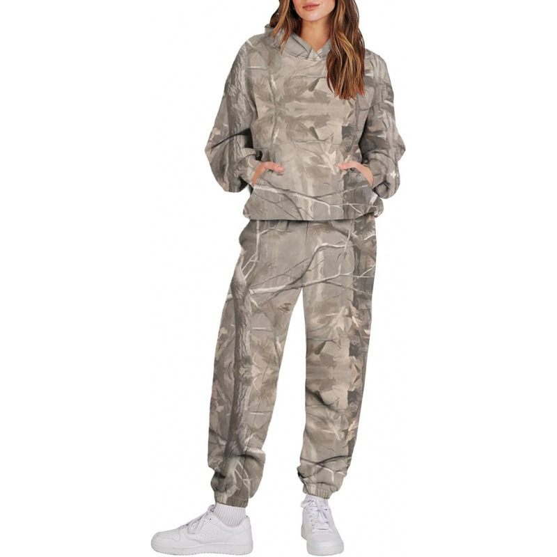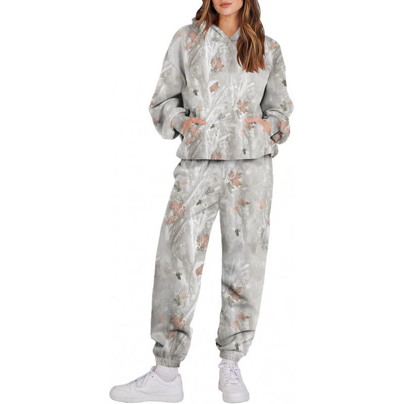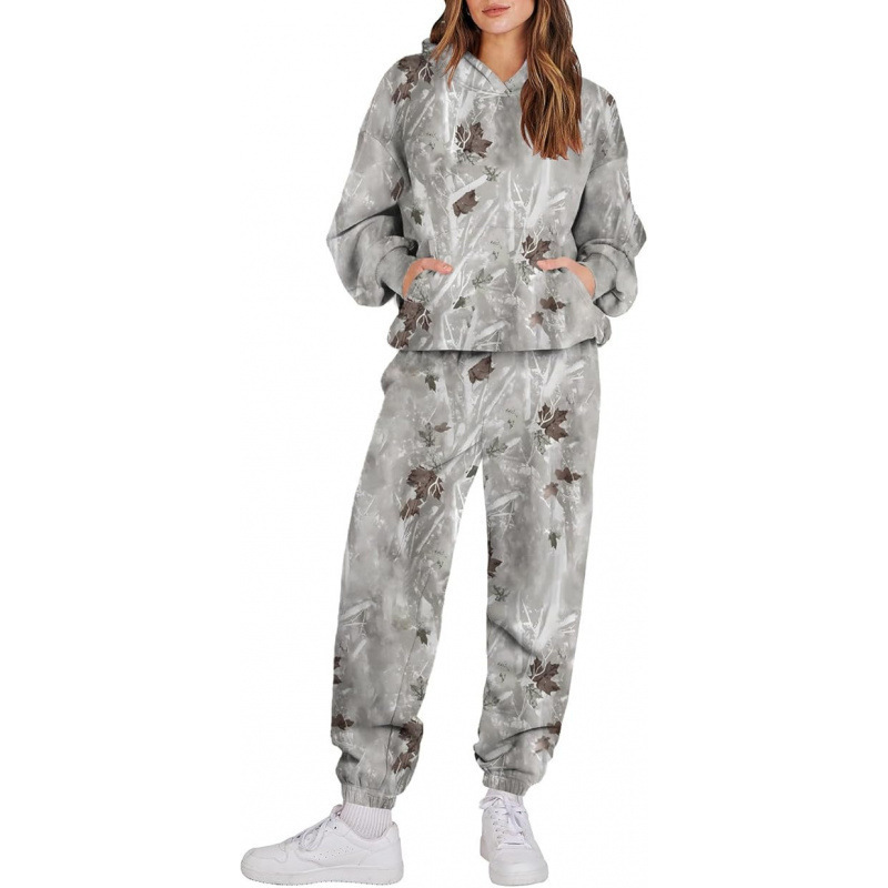 Cross-border otoño hombre y mujer camiseta encapuchada moda manga larga camuflaje jungla hoja de arce patrón de impresión 3D camiseta