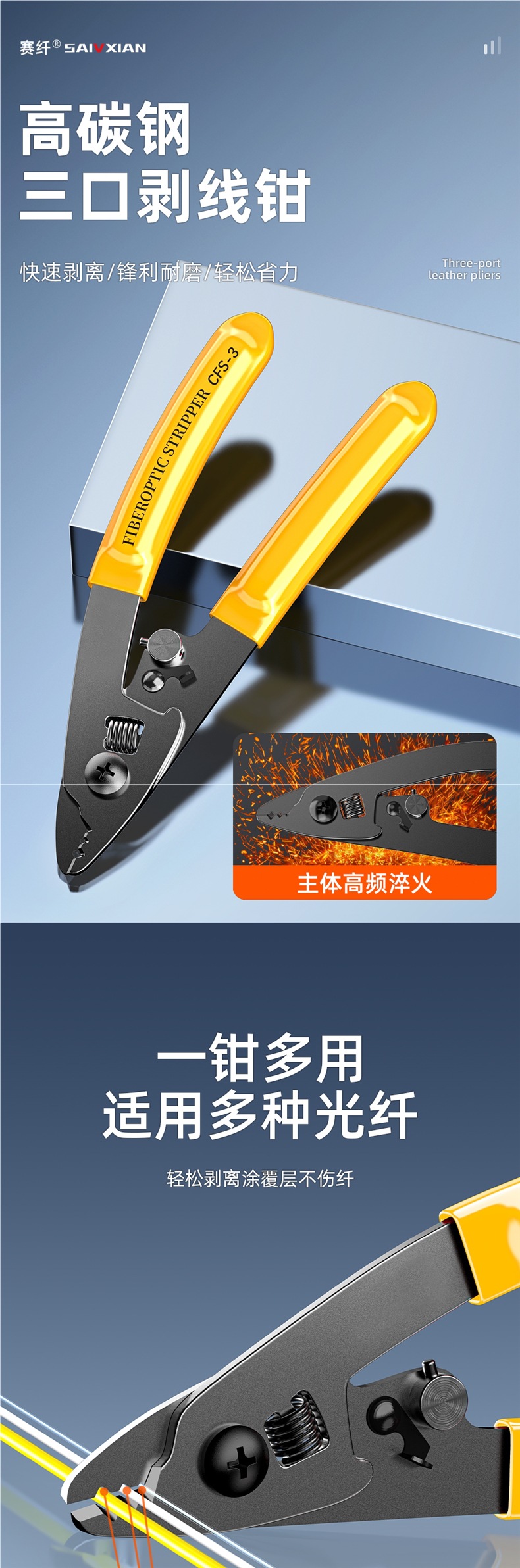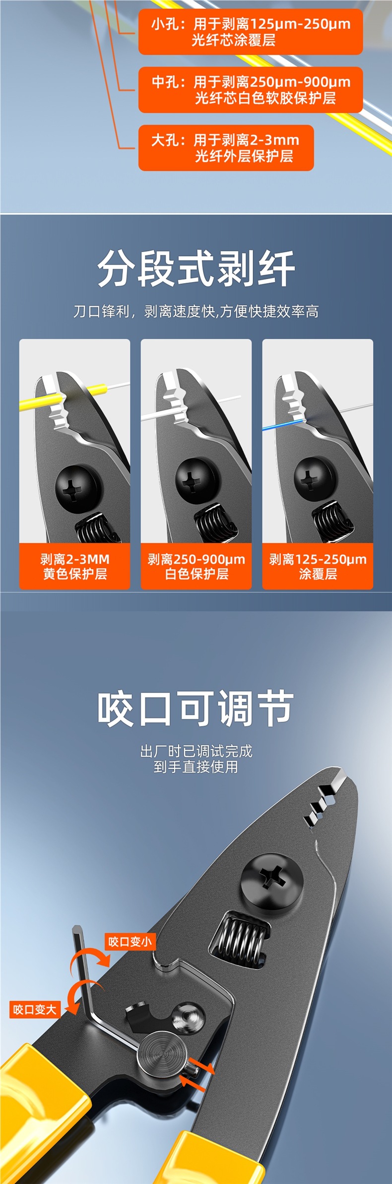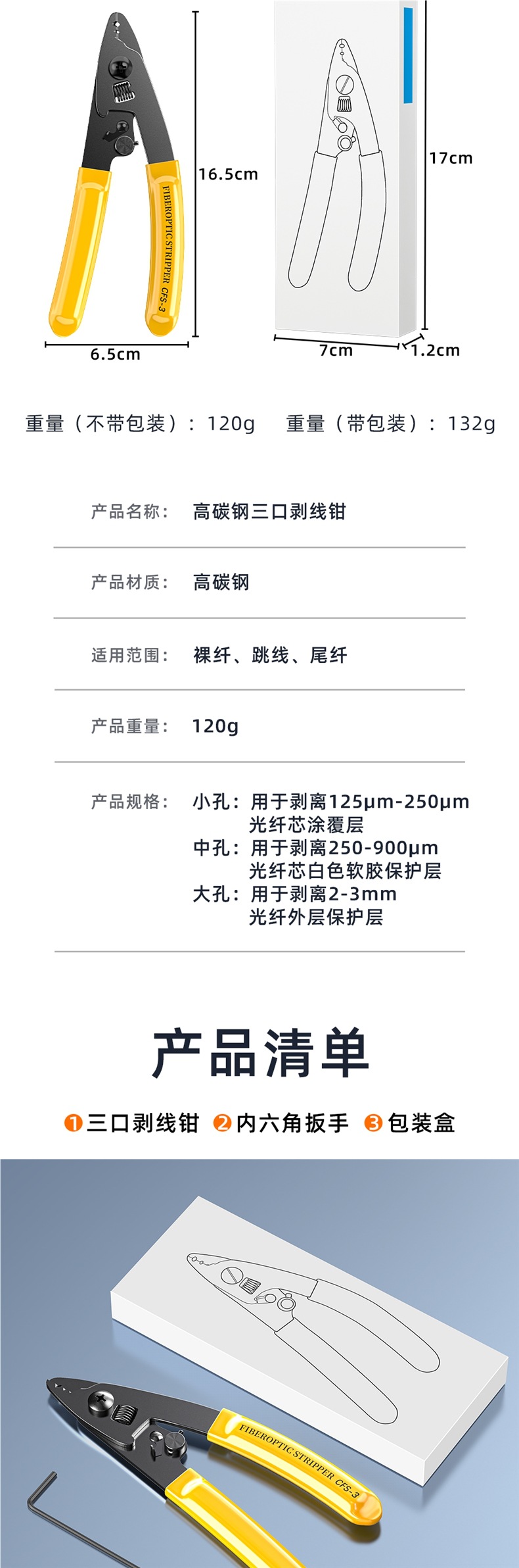 Fibra óptica Müller pinza de fibra óptica pinza de descascar de fibra de tres puertos pinza de descascar de alambre de piel pinza de maitreya pinza herramienta de unión en frío conjunto de luz