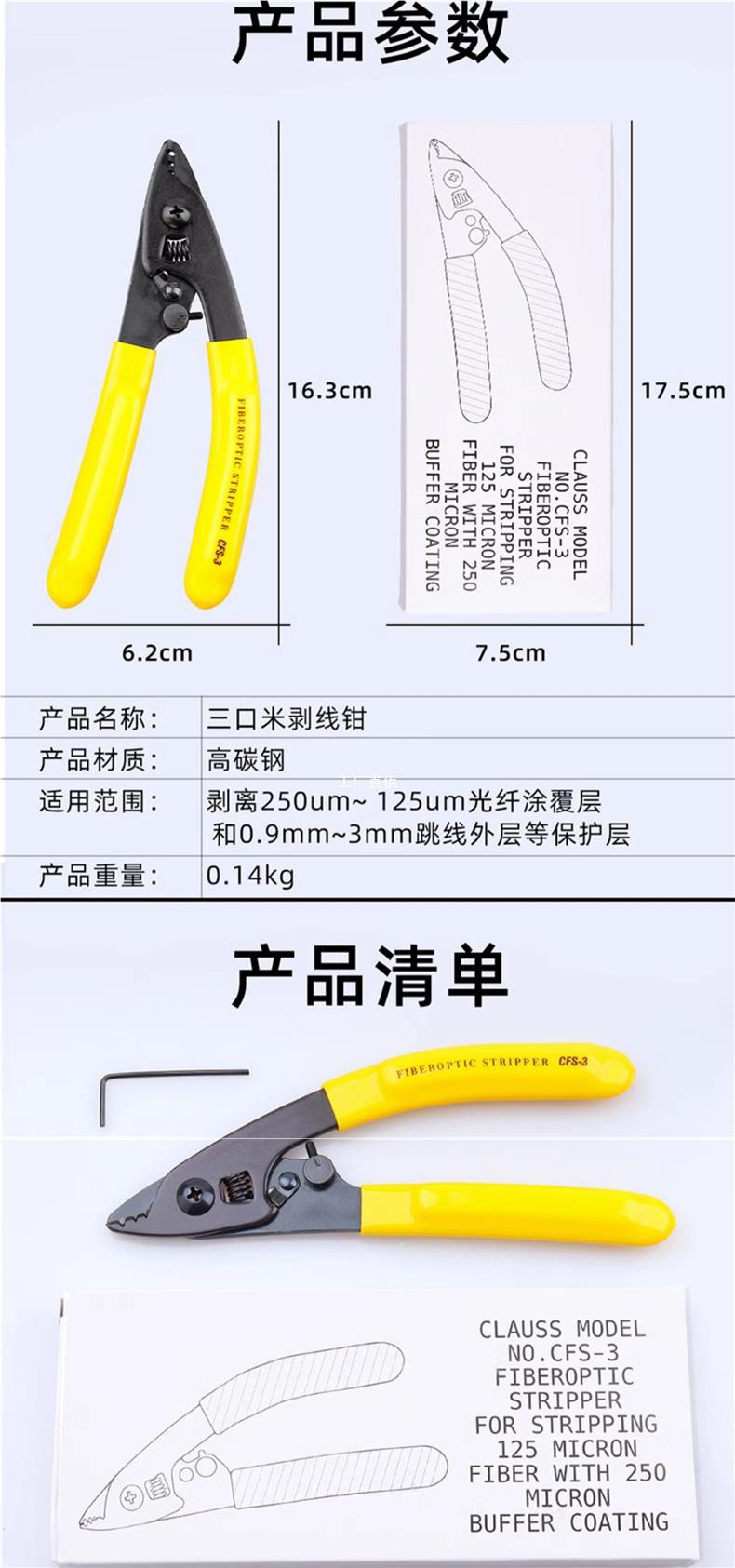 Fibra óptica Müller pinza de fibra óptica pinza de descascar de fibra de tres puertos pinza de descascar de alambre de piel pinza Maitreya pinza herramienta de unión en frío Yathons