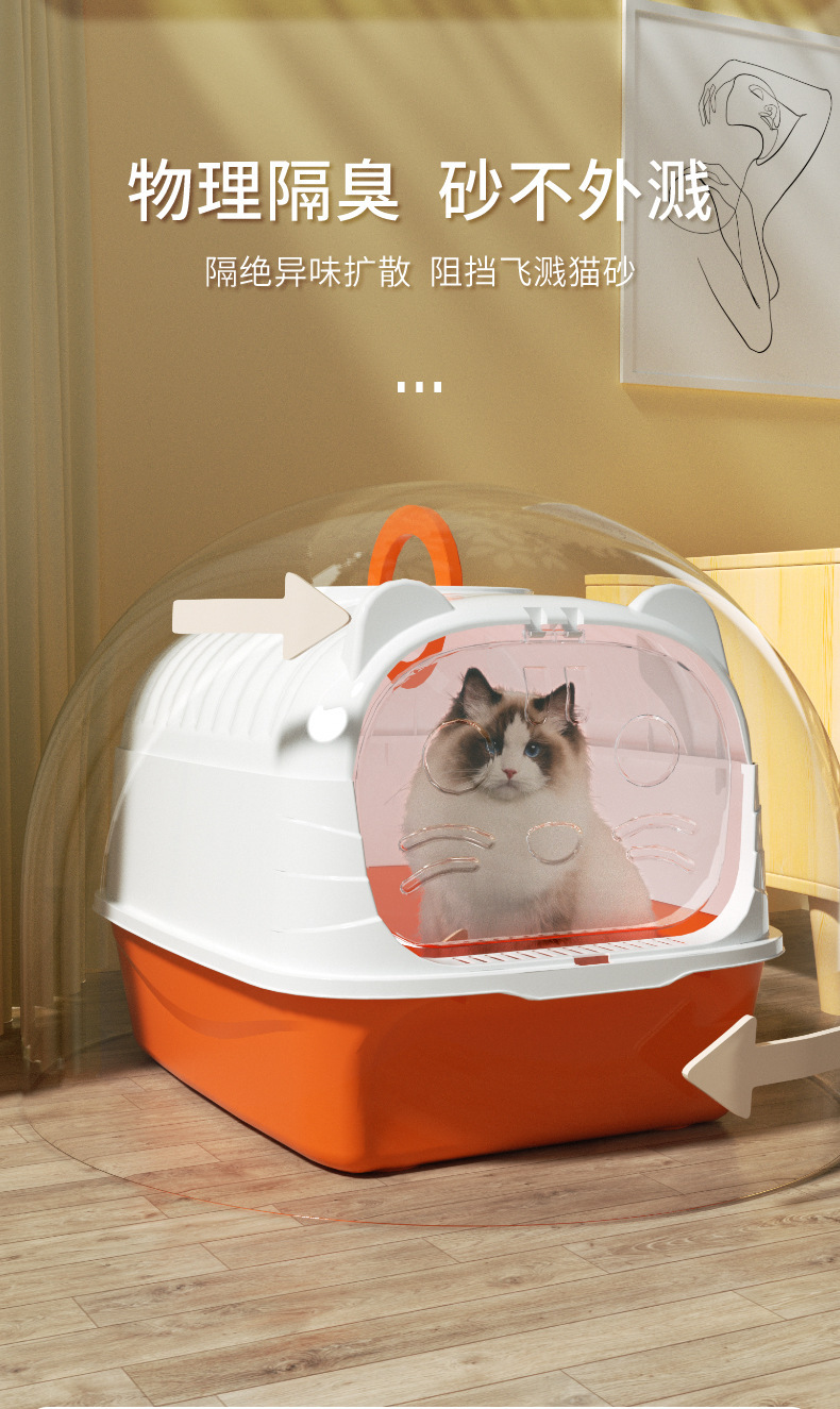 Explosión transfronteriza de arena para gatos totalmente cerrada inodoro para gatos de gran tamaño, arena para gatos de gran tamaño portátil, lavabo de heces para gatos de gran tamaño