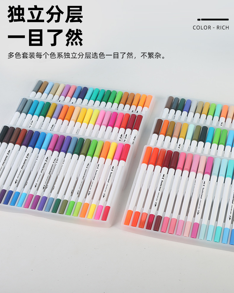 Rotulador de acuarela de doble punta con varilla negra de 72 colores [Estilo caja rígida PET]