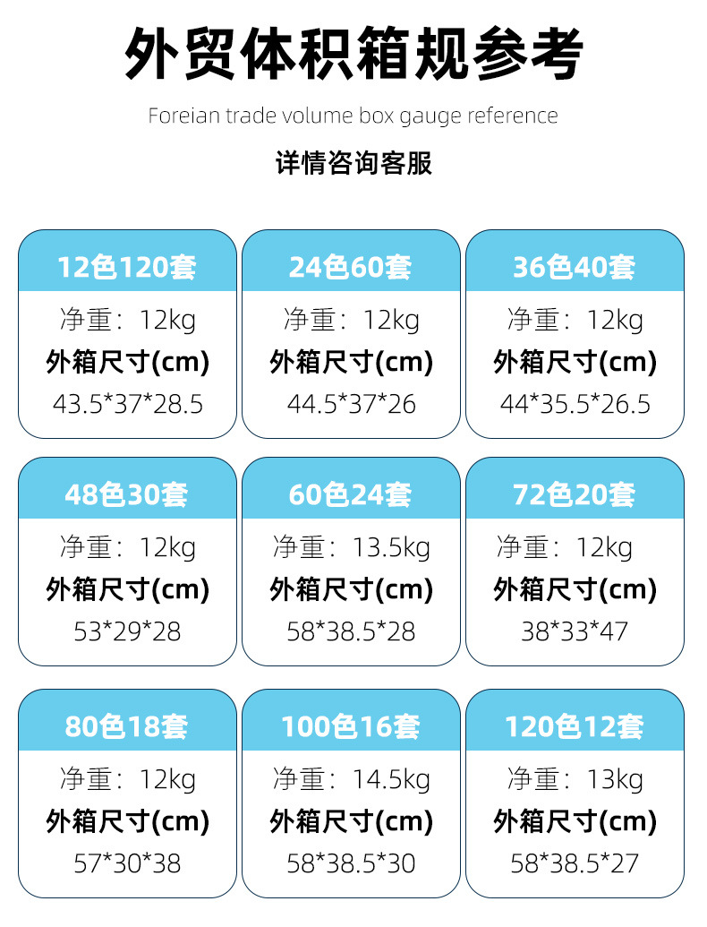 | Especificaciones | Bolígrafo de acuarela de doble punta con varilla blanca de 12 colores [caja blanda de PVC],Bolígrafo de acuarela de doble punta con varilla blanca de 24 colores [caja blanda de PVC],Bolígrafo de acuarela de doble punta con varilla negra de 24 colores [caja blanda de PVC],Bolígrafo de acuarela de doble punta con varilla blanca de 36 colores [caja blanda de PVC],Bolígrafo de acuarela de doble punta con varilla negra de 36 colores [caja blanda de PVC],Bolígrafo de acuarela de doble punta con varilla blanca de 48 colores [caja blanda de PVC],Bolígrafo de acuarela de doble punta con varilla negra de 48 colores [caja blanda de PVC],Bolígrafo de acuarela de doble punta con varilla negra de 12 colores [caja blanda de PVC],Bolígrafo de acuarela de doble punta con varilla blanca de 12 colores [caja dura PET],Bolígrafo de acuarela de doble punta con varilla blanca de 36 colores [caja dura PET],Bolígrafo de acuarela de doble punta con varilla negra de 36 colores [caja dura PET],Bolígrafo de acuarela de doble punta con varilla blanca de 48 colores [caja dura PET],Bolígrafo de acuarela de doble punta con varilla negra de 48 colores [caja dura PET],Bolígrafo de acuarela de doble punta de varilla blanca de 60 colores [caja dura PET],Bolígrafo de acuarela de doble punta con varilla negra de 60 colores [caja dura PET],Bolígrafo de acuarela de doble punta con varilla blanca de 80 colores [caja dura PET],Bolígrafo de acuarela de doble punta con varilla negra de 80 colores [caja dura PET],Bolígrafo de acuarela de doble punta con varilla blanca de 100 colores [caja dura PET],Bolígrafo de acuarela de doble punta con varilla negra de 100 colores [caja dura PET],Bolígrafo de acuarela de doble punta con varilla blanca de 120 colores [caja dura PET],Bolígrafo de acuarela de doble punta con varilla negra de 120 colores [caja dura PET],Rotulador de acuarela de doble punta con varilla negra de 72 colores [Estilo caja rígida PET] |