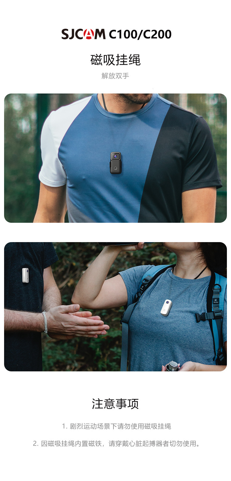 SJCAM C100/C200/C300 cordón magnético dedicado liberación clip trasero fijo cámara de grabación de carrera