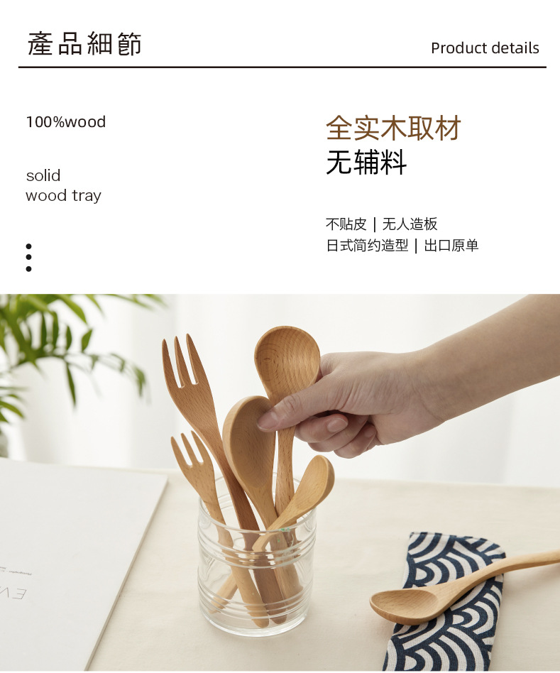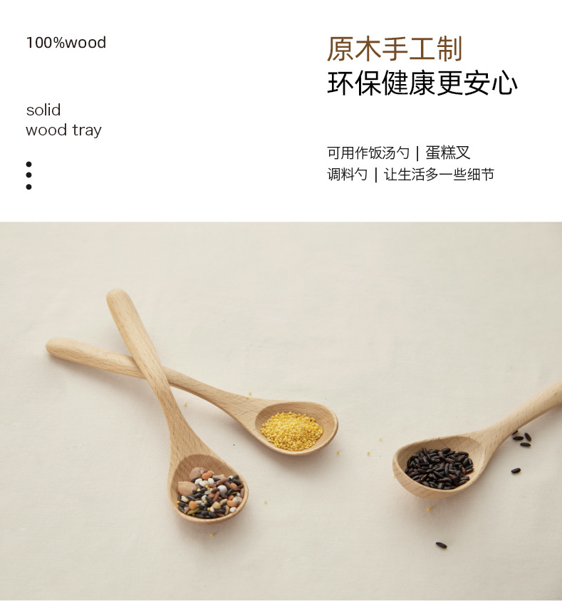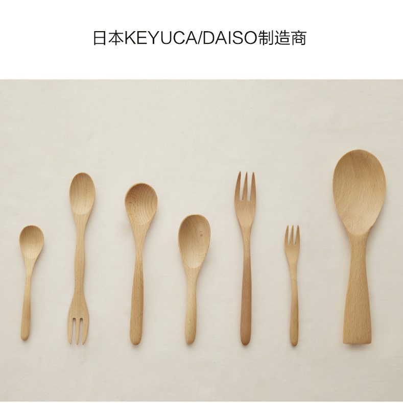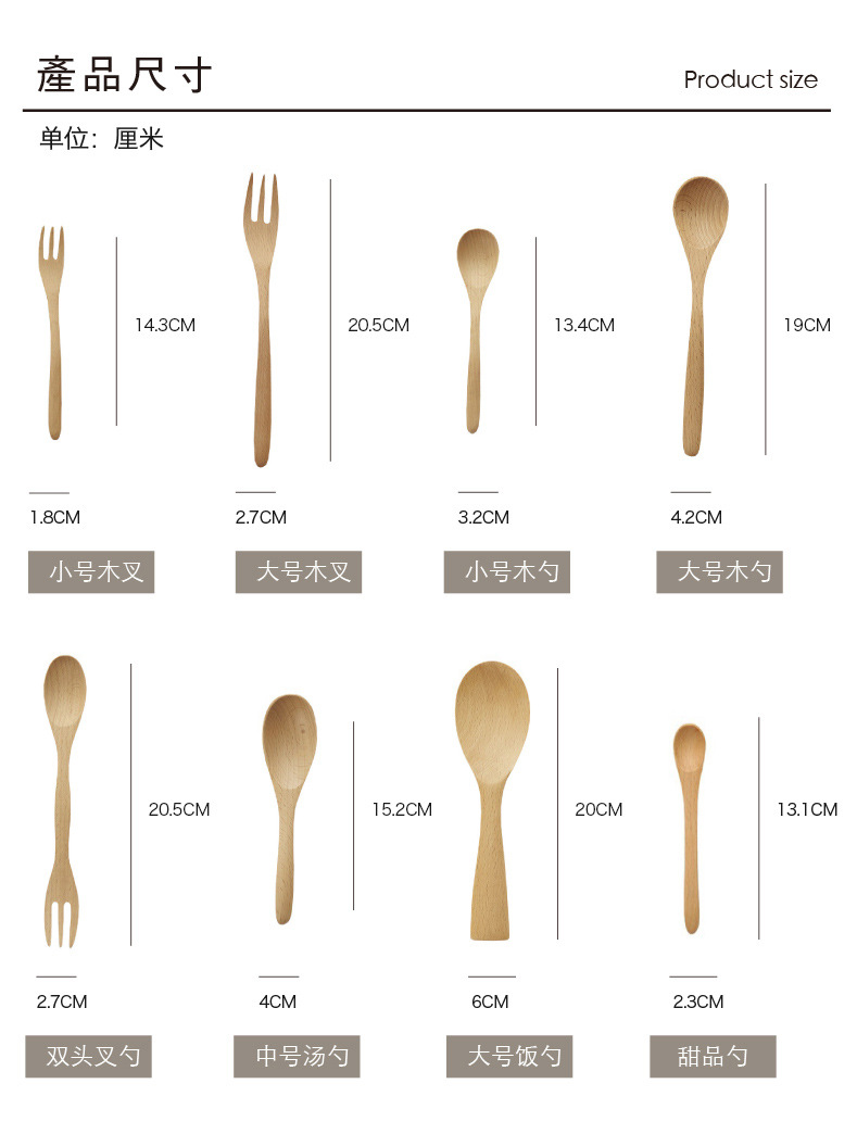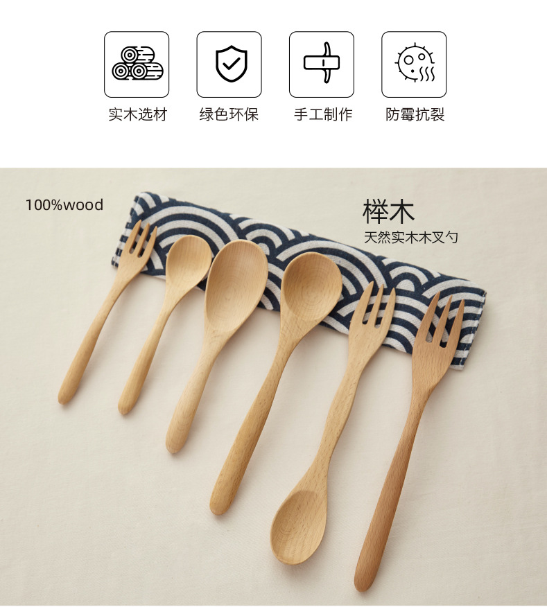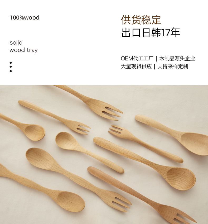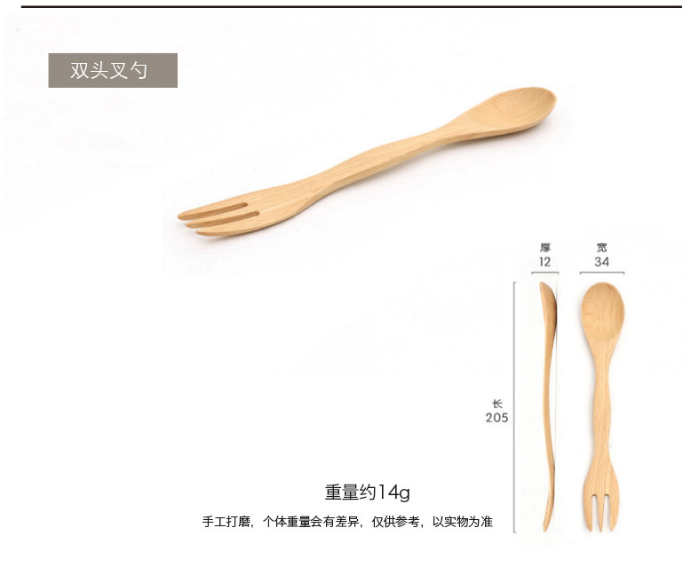 Madera sólida cocina cuchara de hayale tenedor de madera cuchara de doble cabeza tenedor de cocina de café mermelada cuchara de postre LOGO personalizado