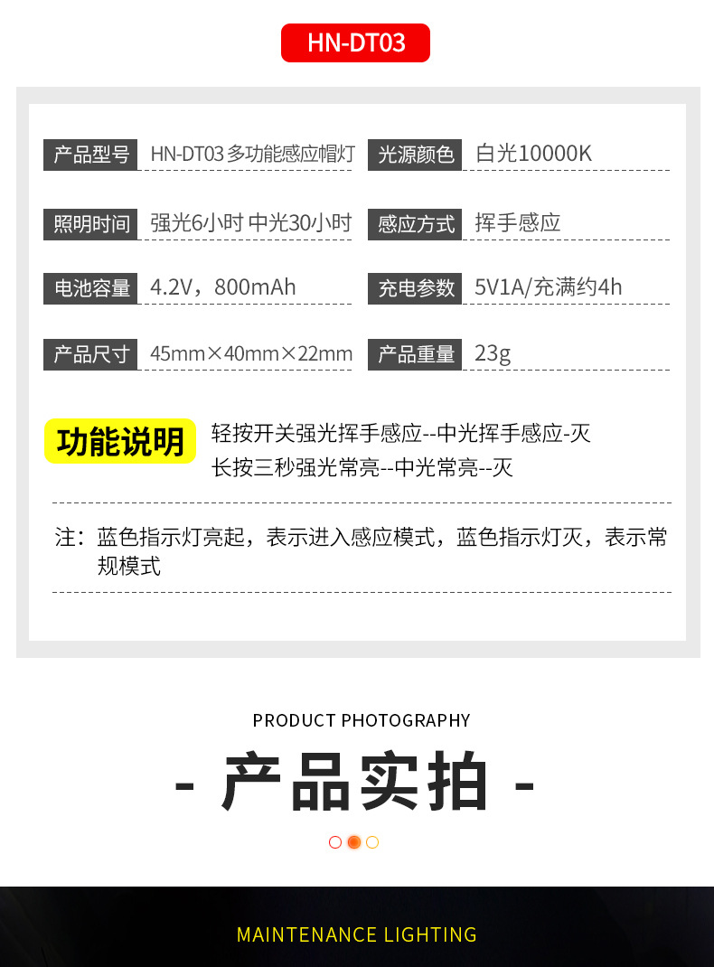 | Número de artículo | Lámpara de clip de sombrero de inducción dt03 de Hana |