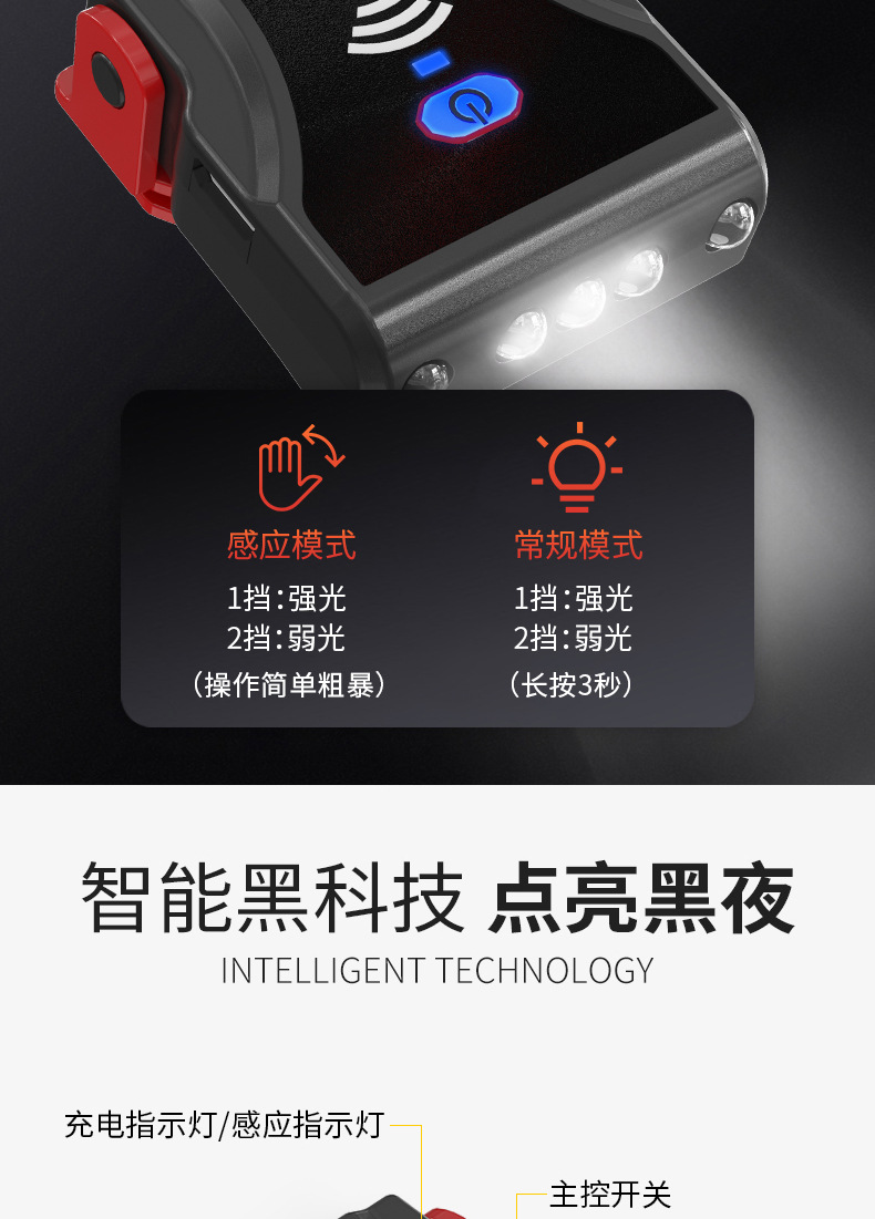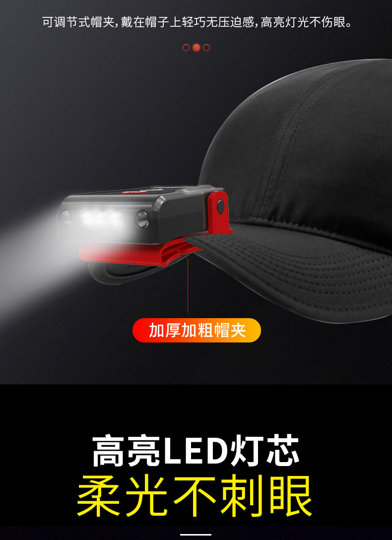 camping headlight pesca especial carga luz de inducción alta luz LED super brillante cabeza montada en el cebo sombrero sombrero lámpara de clip de sombrero