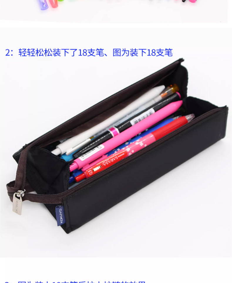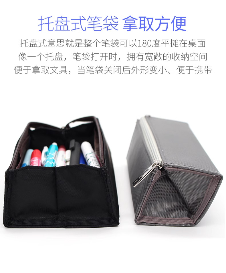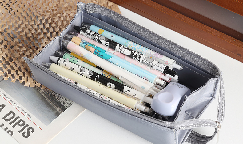 Estuche de lápices tridimensional creativo de estilo japonés, cuadrado, abierto por ambos lados, con asa, bolsa de papelería de gran capacidad para estudiantes.