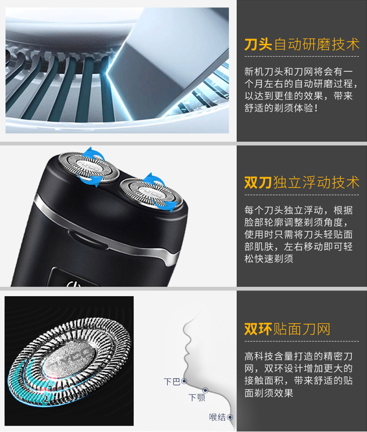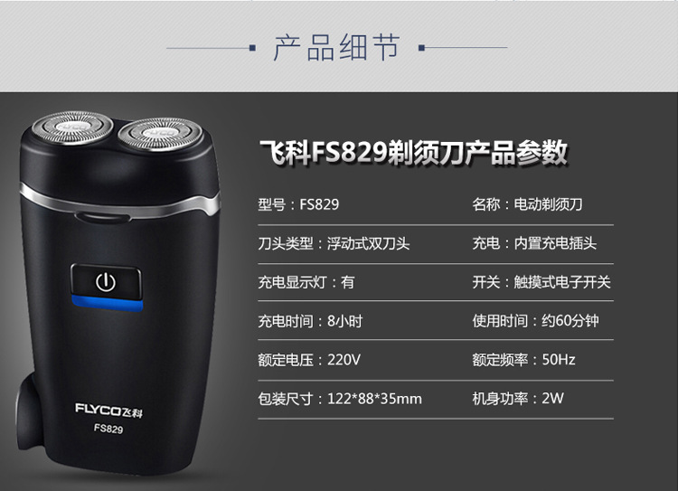 Feike máquina de afeitar eléctrica recargable cabeza de corte flotante de doble cabeza de lavado de negocios compacto portátil FS829