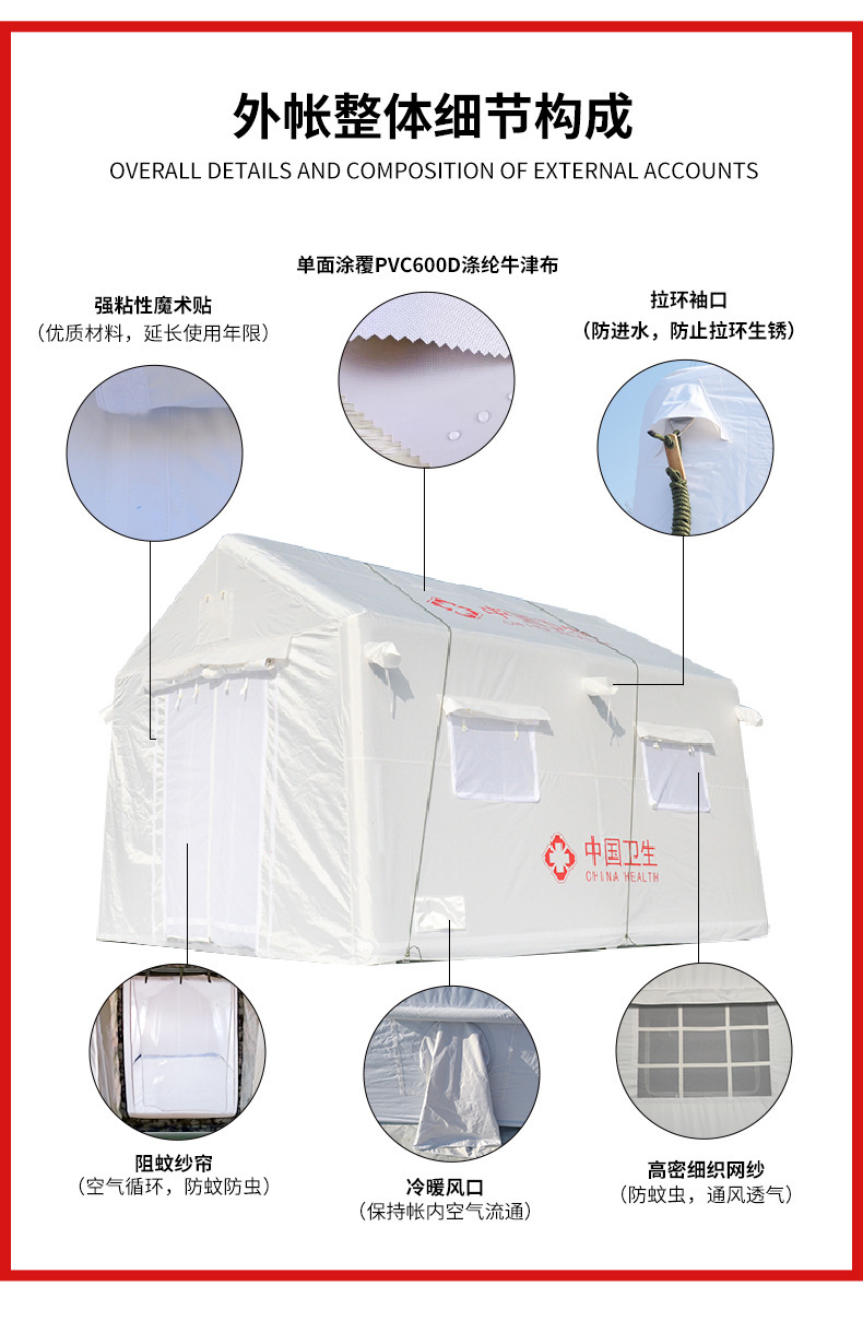 antisísmo médico, prevención de inundaciones y prevención de epidemias, aislamiento epidémico temporal, detección médica, socorro de emergencia, salud, tienda inflable, ligera