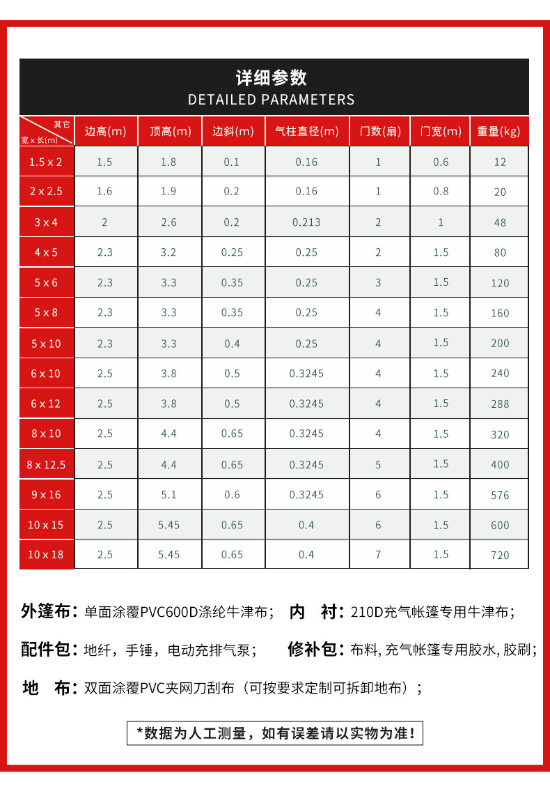 | Color | Carpa inflable médica sanitaria / 1 metro cuadrado |