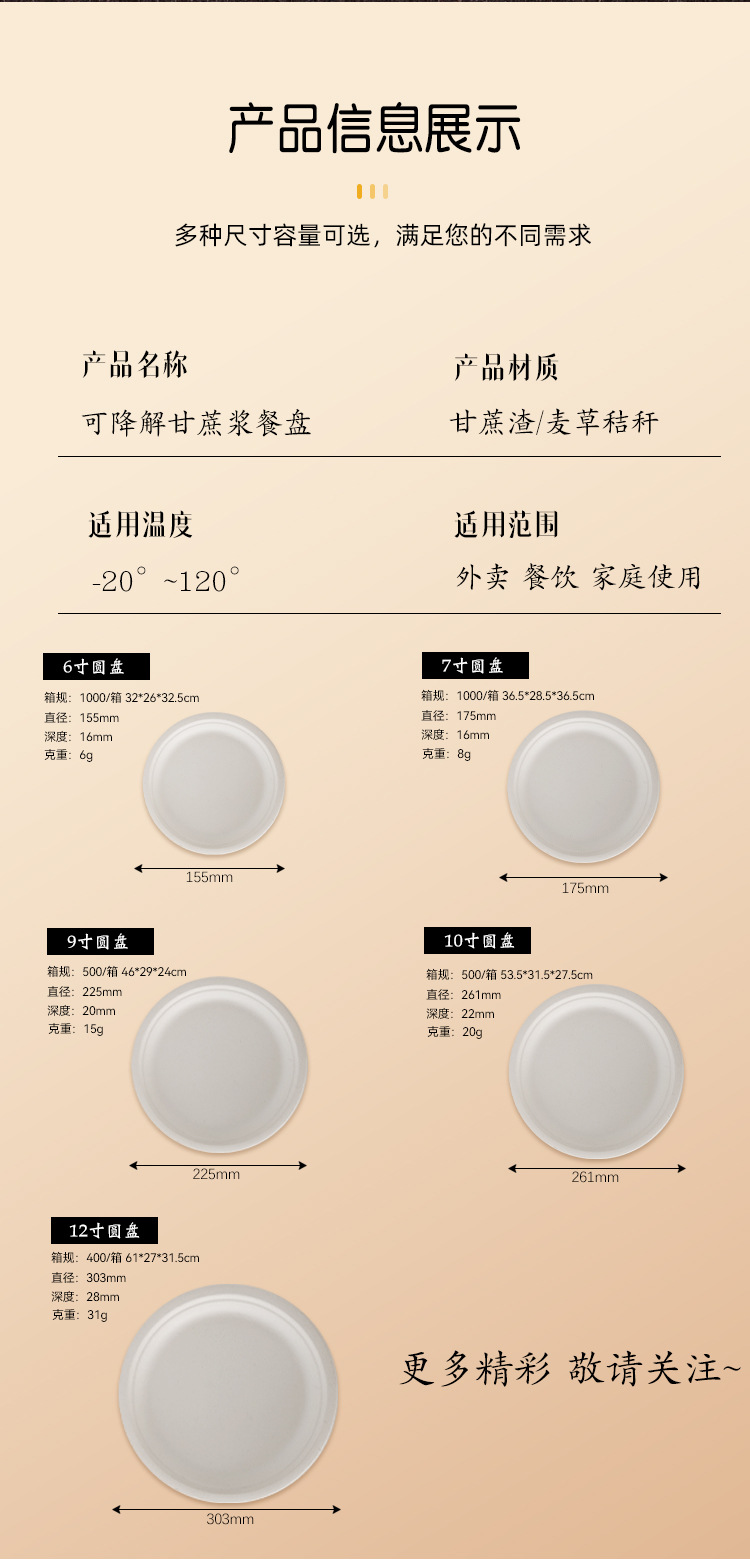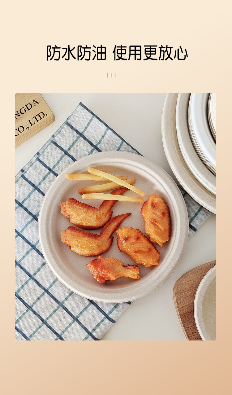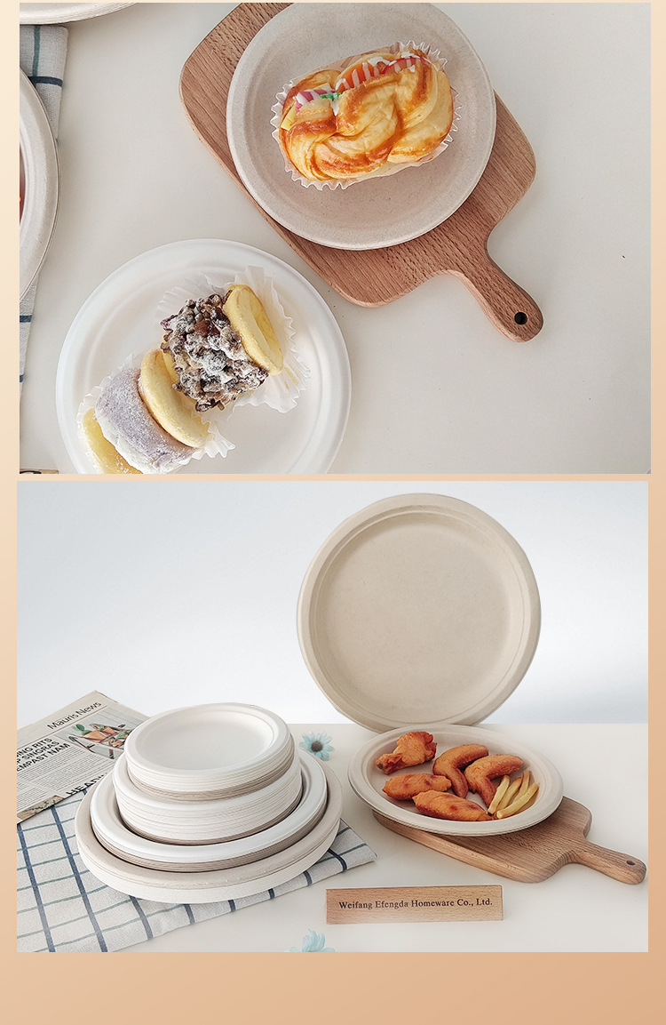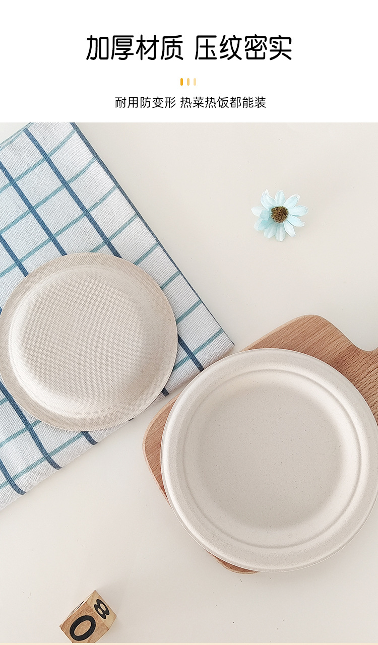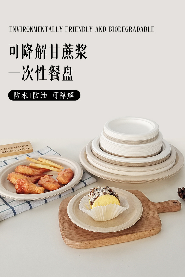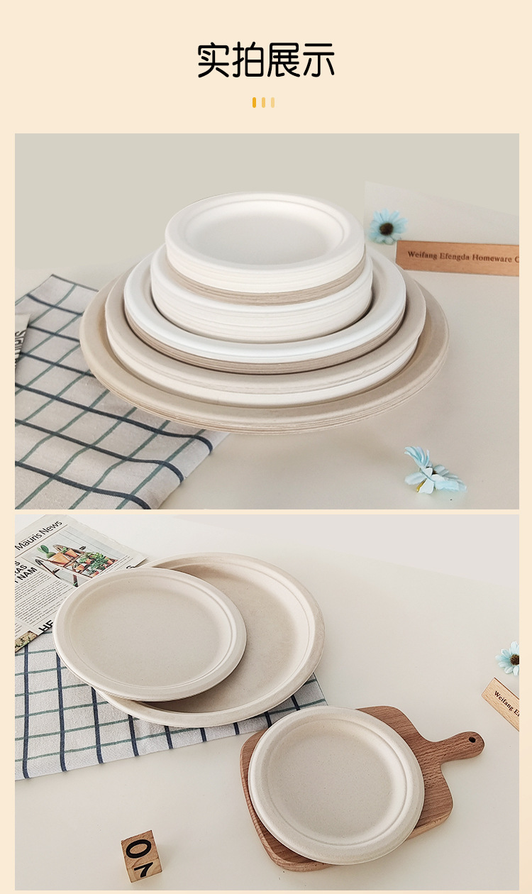 Vajilla desechable biodegradable transfronteriza: plato redondo de 7 pulgadas, plato para pastel de calidad alimentaria, plato de papel de pulpa de caña de azúcar de 9 pulgadas sin necesidad de lavado.