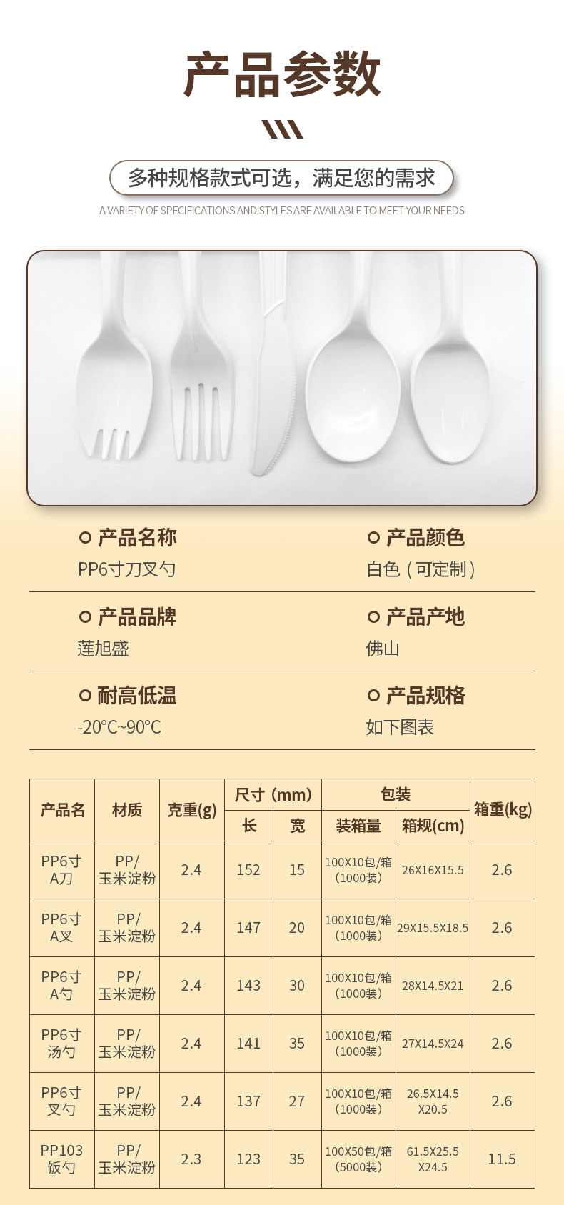 | Color | Tenedor a de PP6 pulgadas, cuchillo a de PP6 pulgadas, cuchara a de PP6 pulgadas, cuchara de tenedor de PP6 pulgadas, cuchara de sopa de PP6 pulgadas |