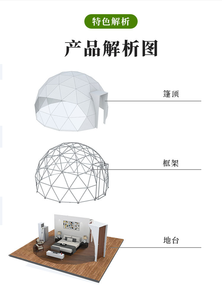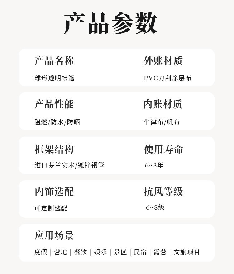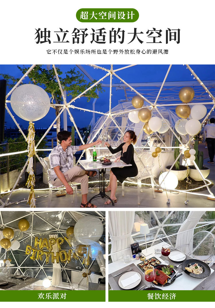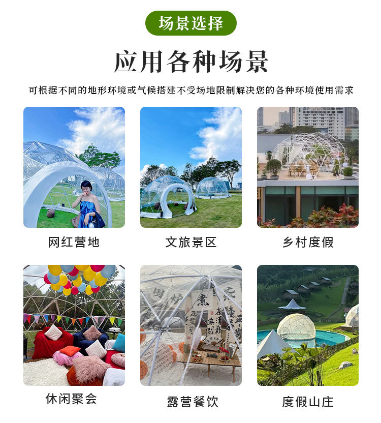 | Especificaciones | Personalización de tiendas de campaña esféricas transparentes |