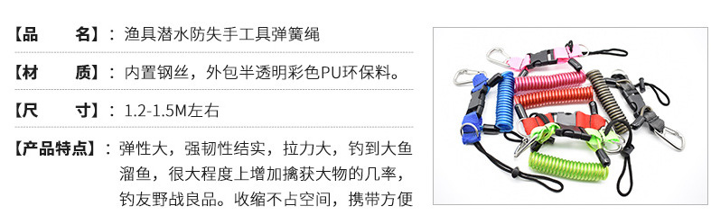 Cuerdas de alambre de acero de resorte de goma, cuerdas de acero TPU de color translúcido, cuerdas de seguridad de resorte de color brillante, cámaras de buceo perdidas
