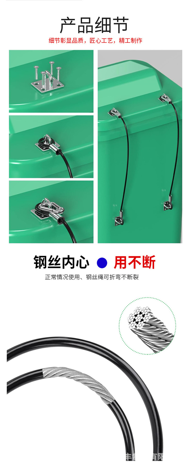 Cubierta de basura de acero inoxidable Cuerdas de alambre de acero Cerradura de cubierta metálica para cubierta de volcado de animales